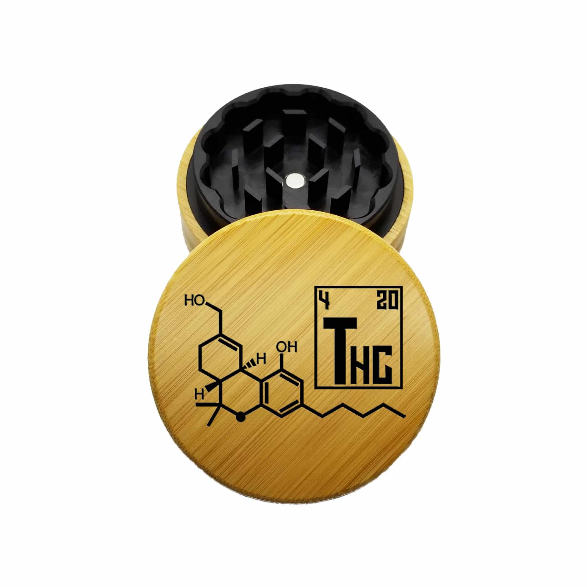 USA Made The Puck® Hybrid™ Grinder: THC Molecule – 70mm Wooden Herb Grinder | Two Piece Grinder