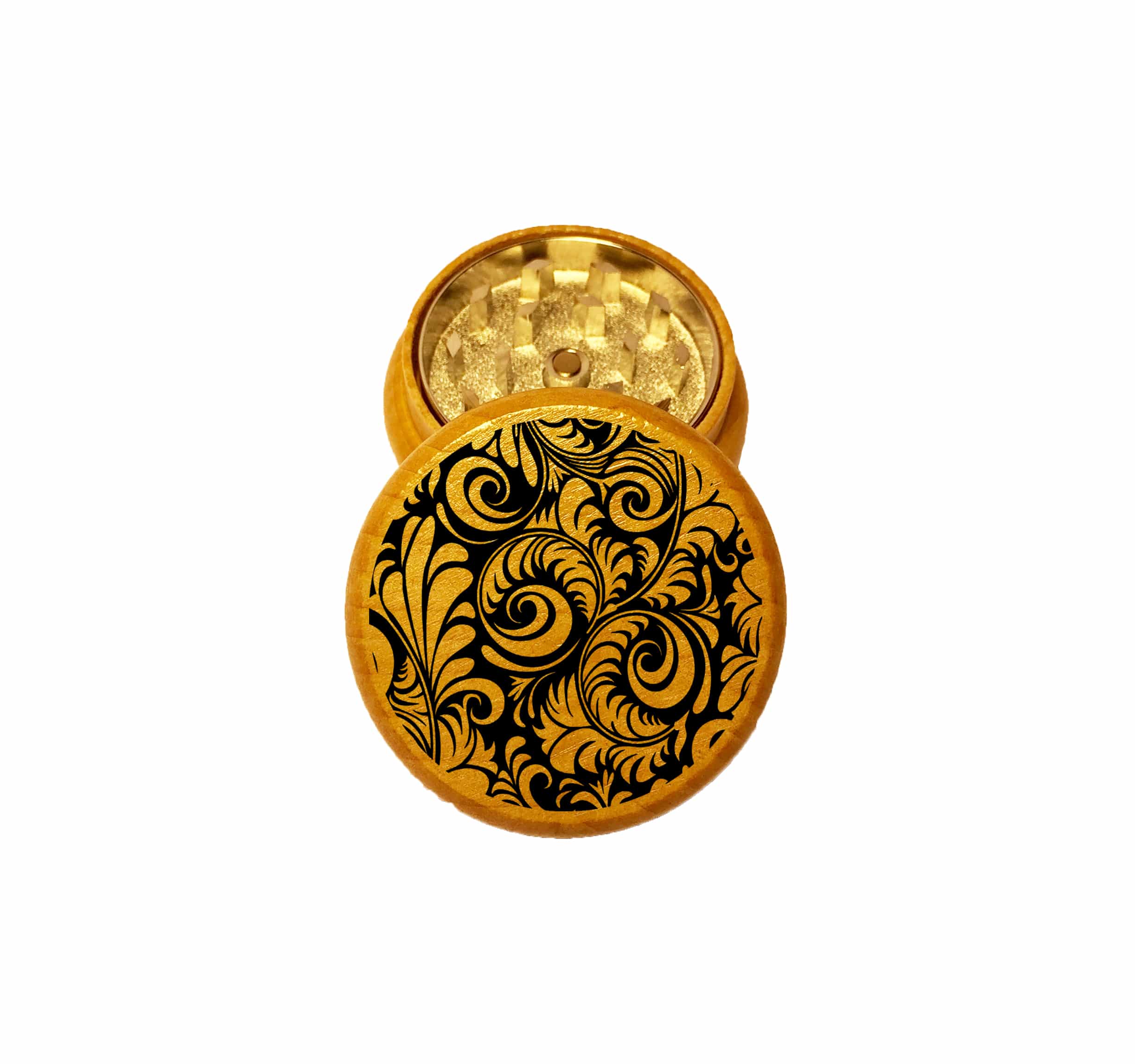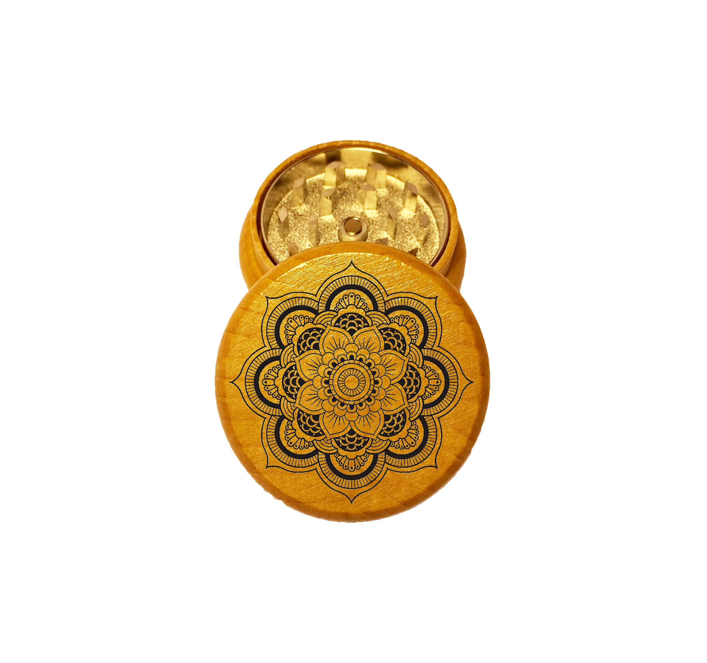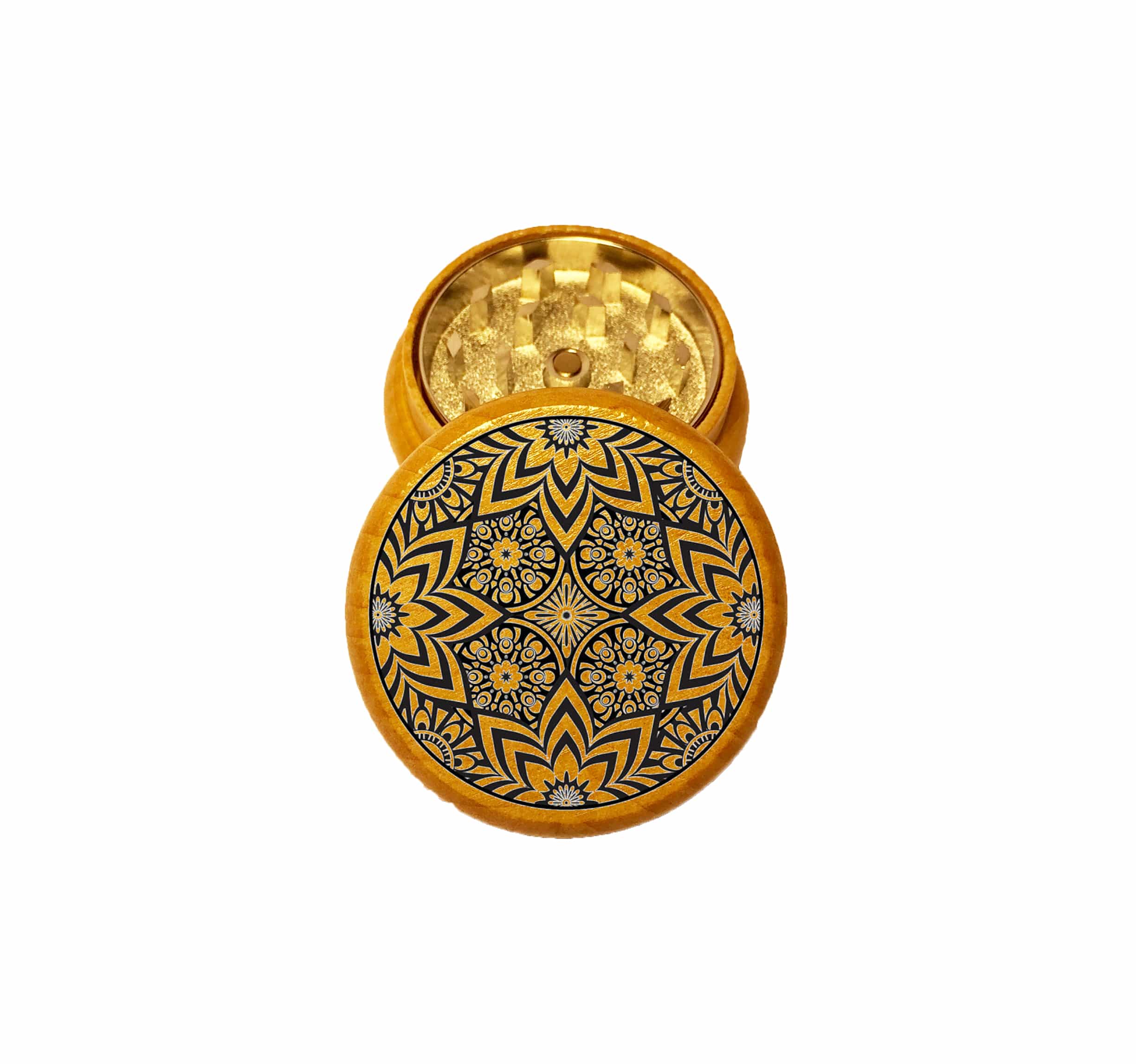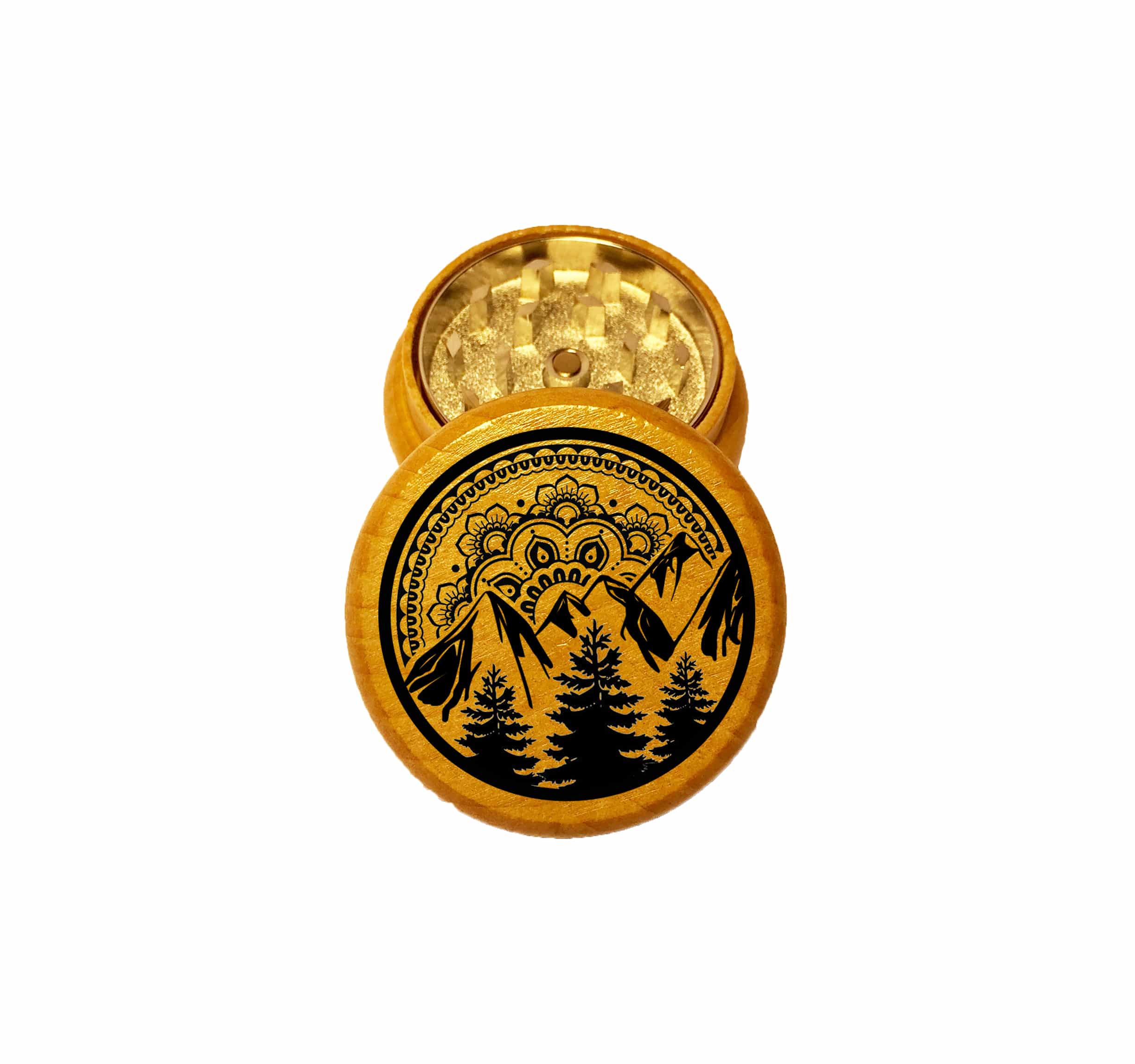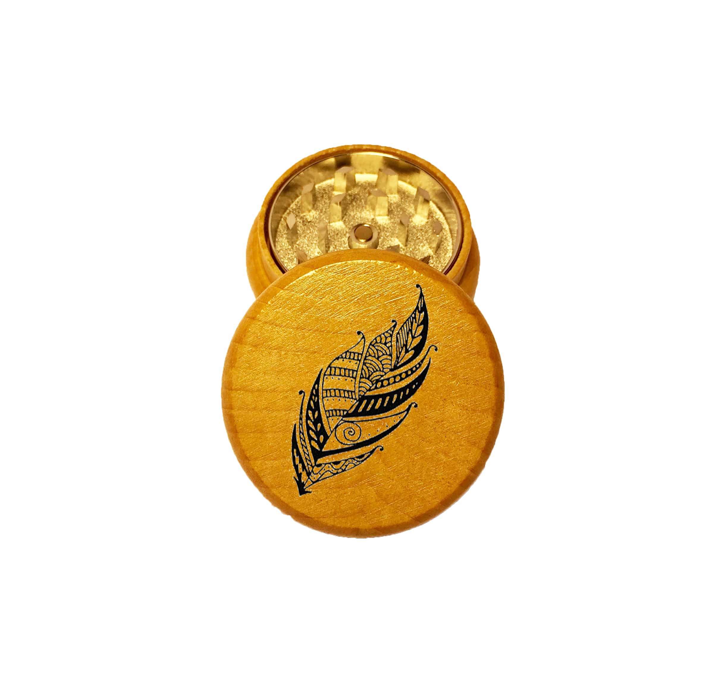 Feather Mandala Mini Wood Grinder – 2PC Wooden Herb Grinder