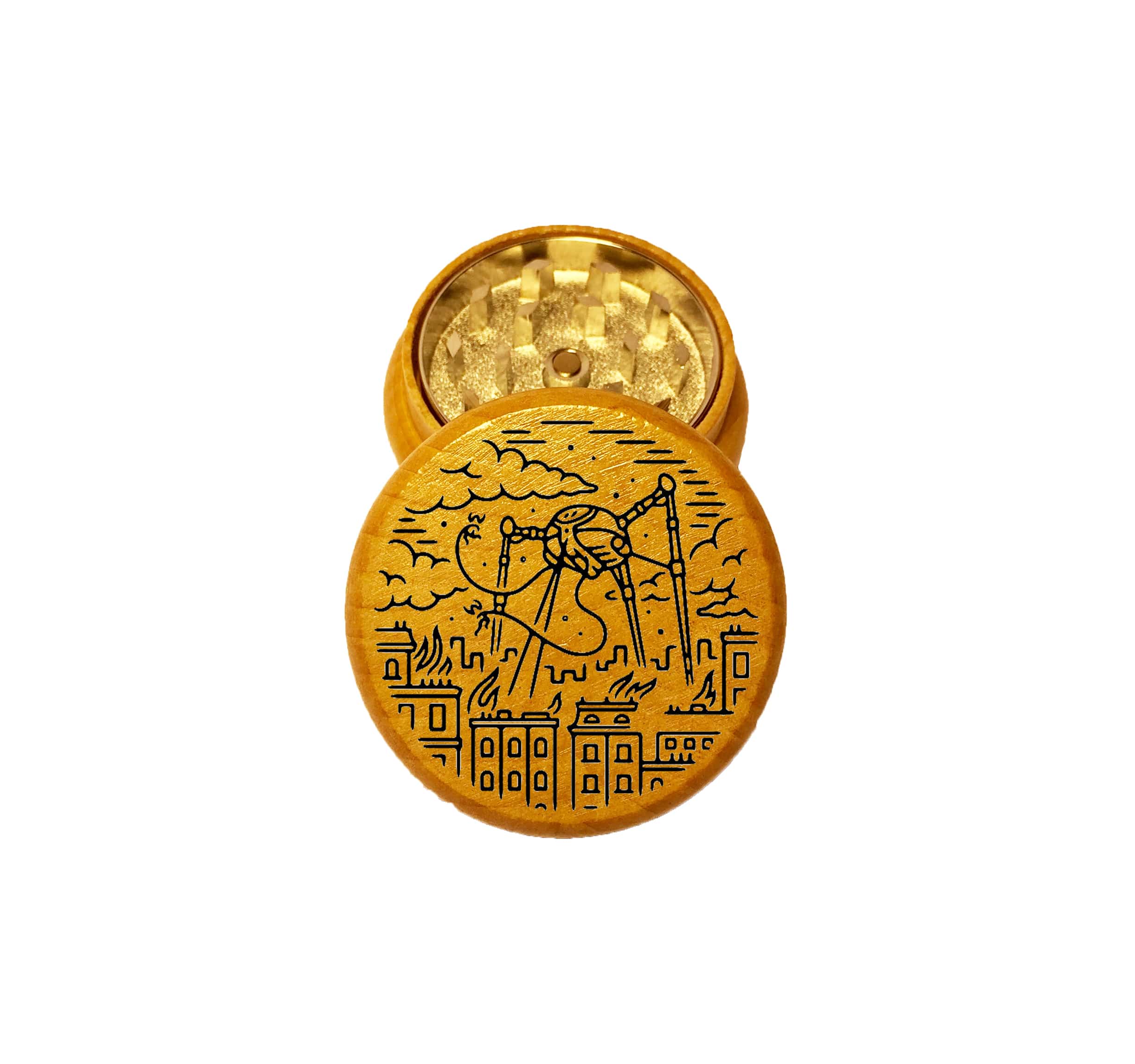 Aliens Mini Wooden Herb Grinder – Two Piece Pocket Grinder