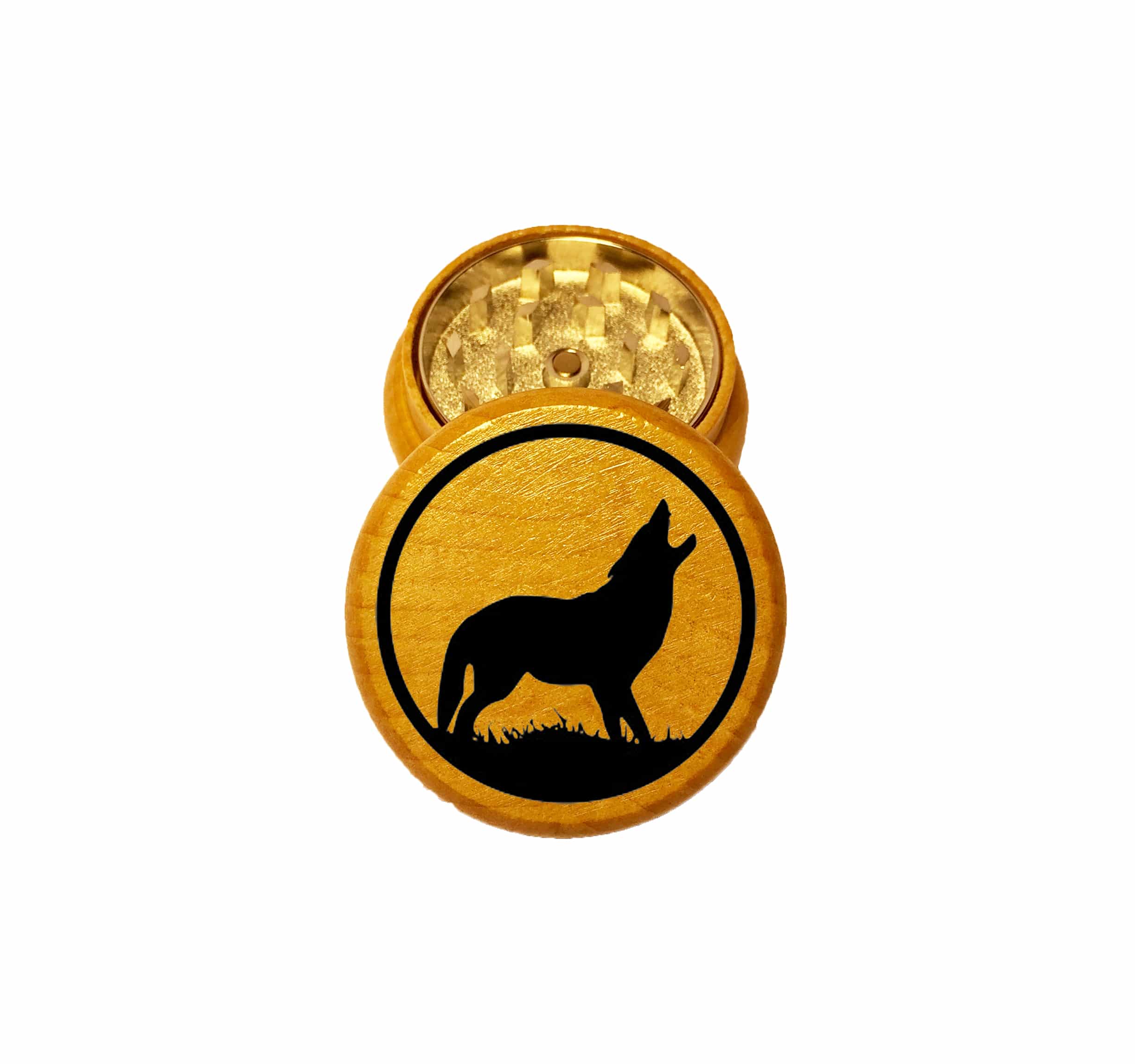 Howling Wolf Mini Wood Herb Grinder – Compact Two Piece Grinder