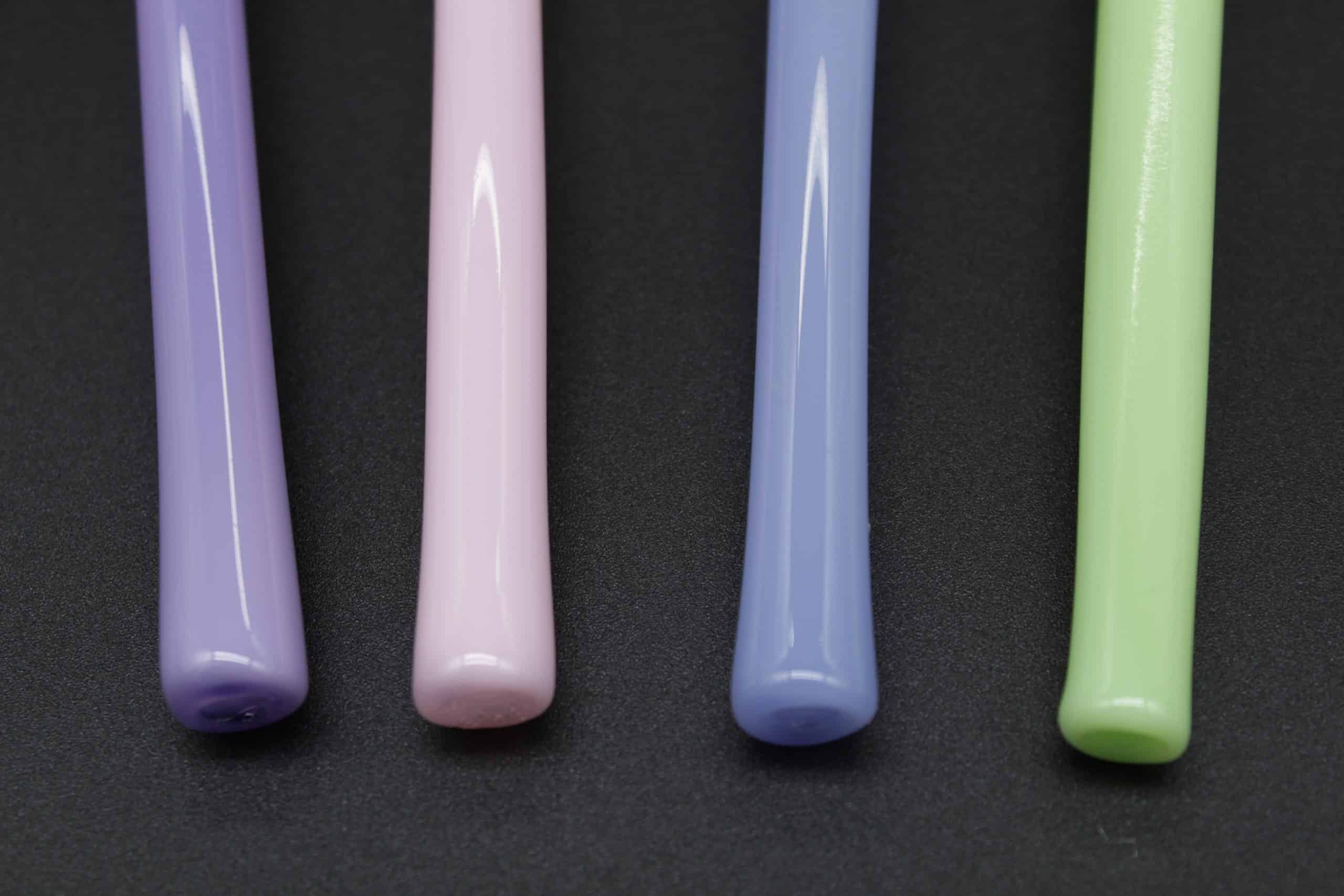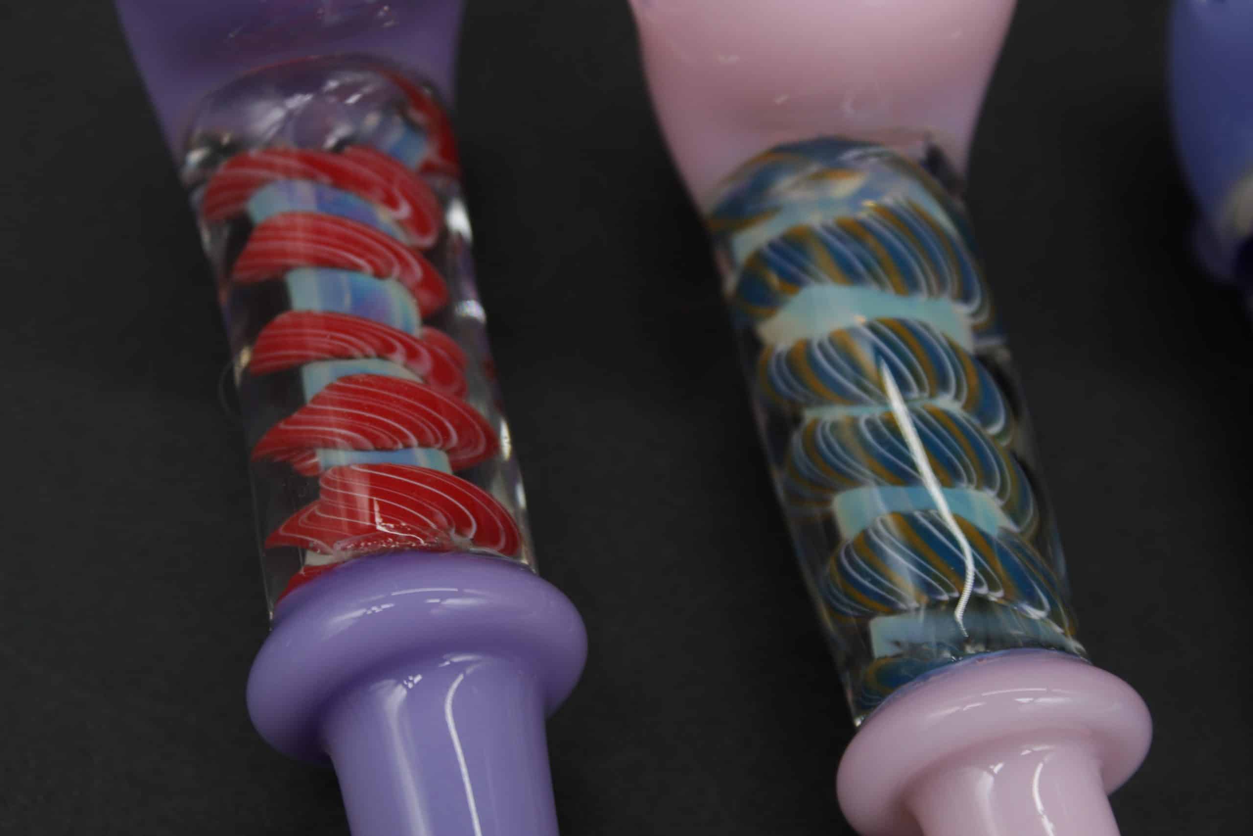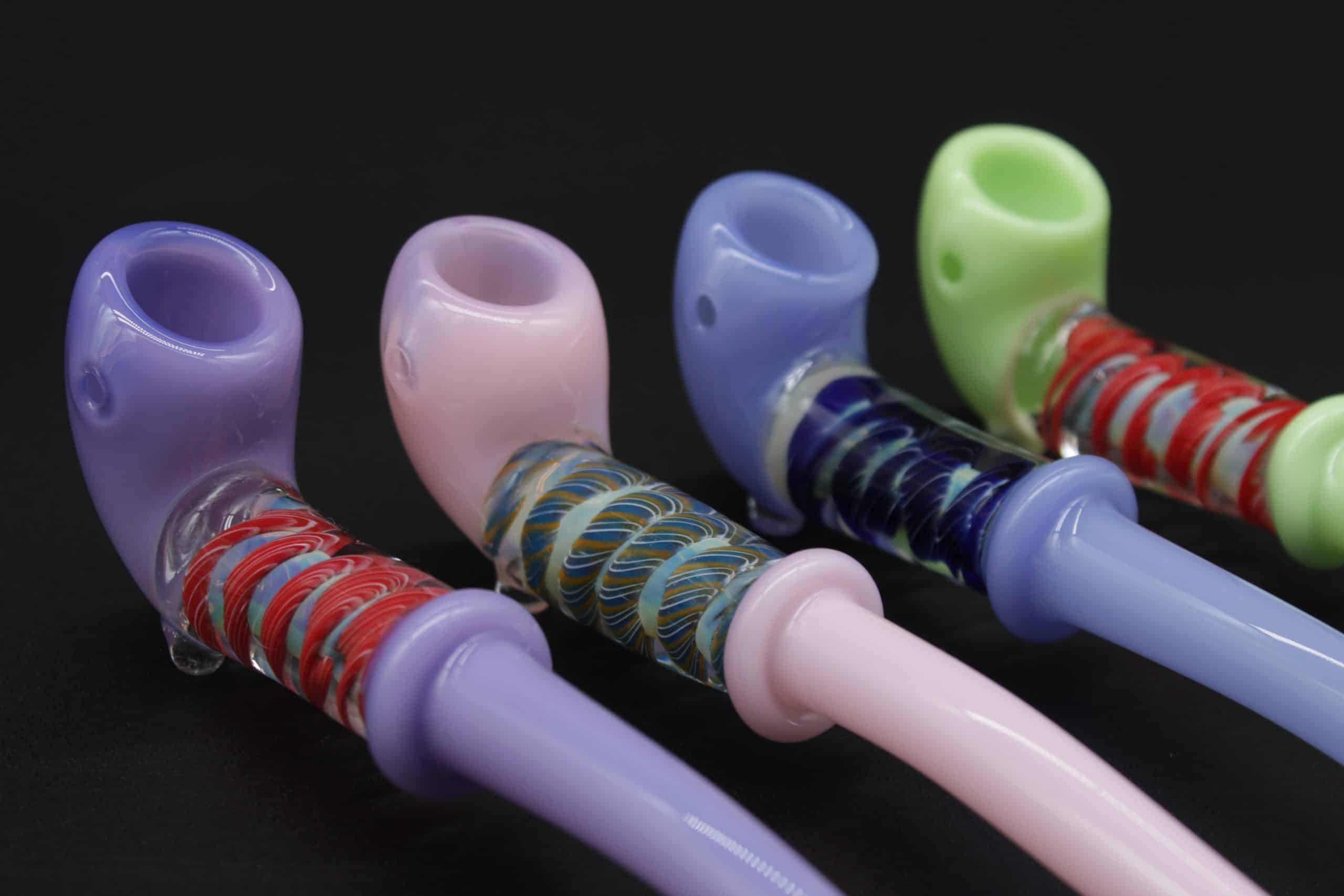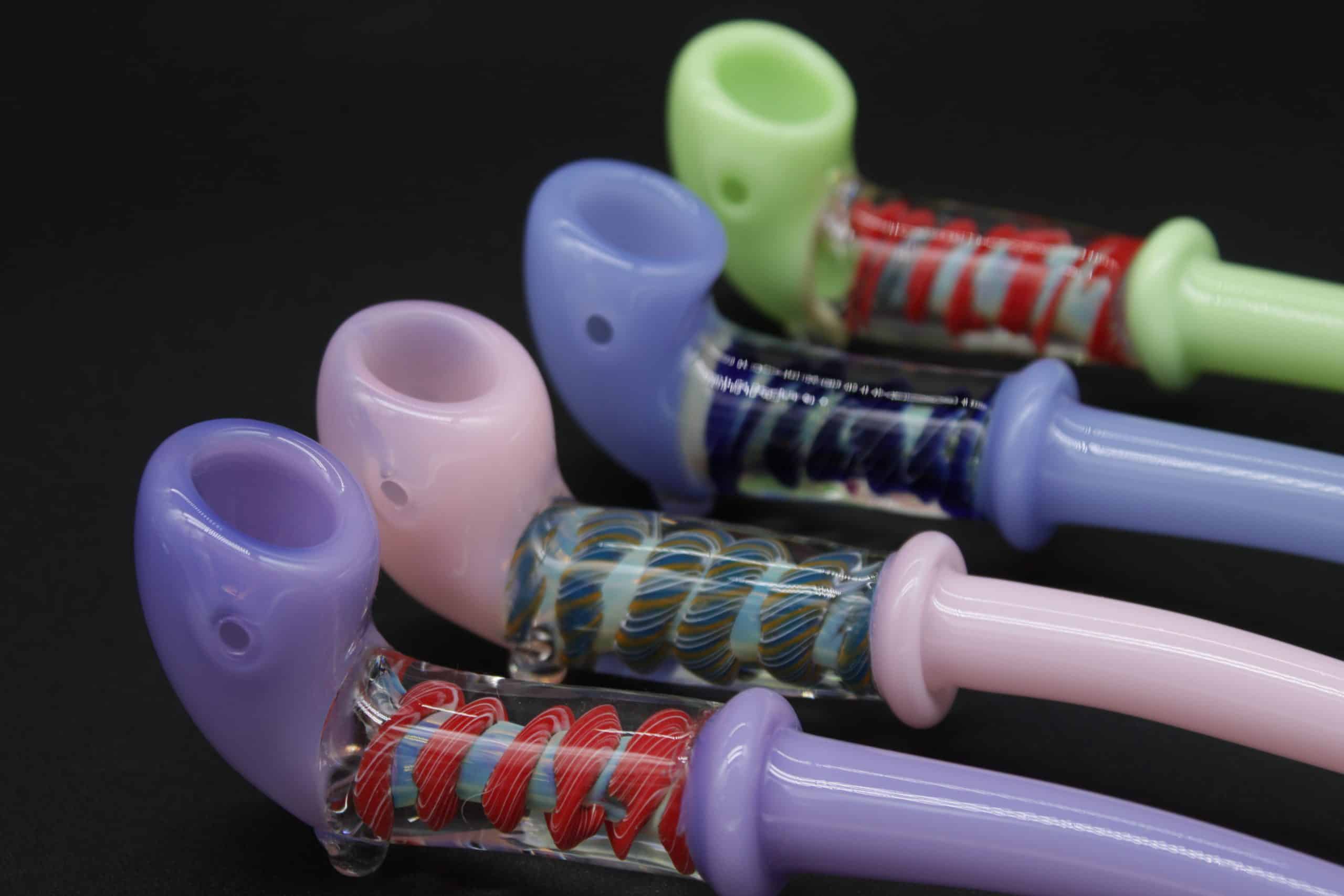 Each pipe includes a 1-inch bowl, side carb hole for airflow control, and two small stabilizing glass feet on the underside to help the pipe rest more securely on flat surfaces. Available in soft pastel tones with artistic internal coil detailing, these pipes are as collectible as they are functional.