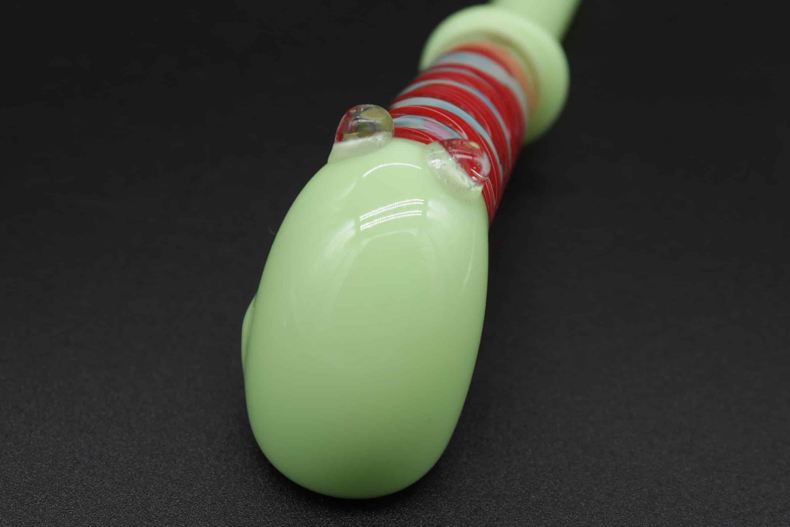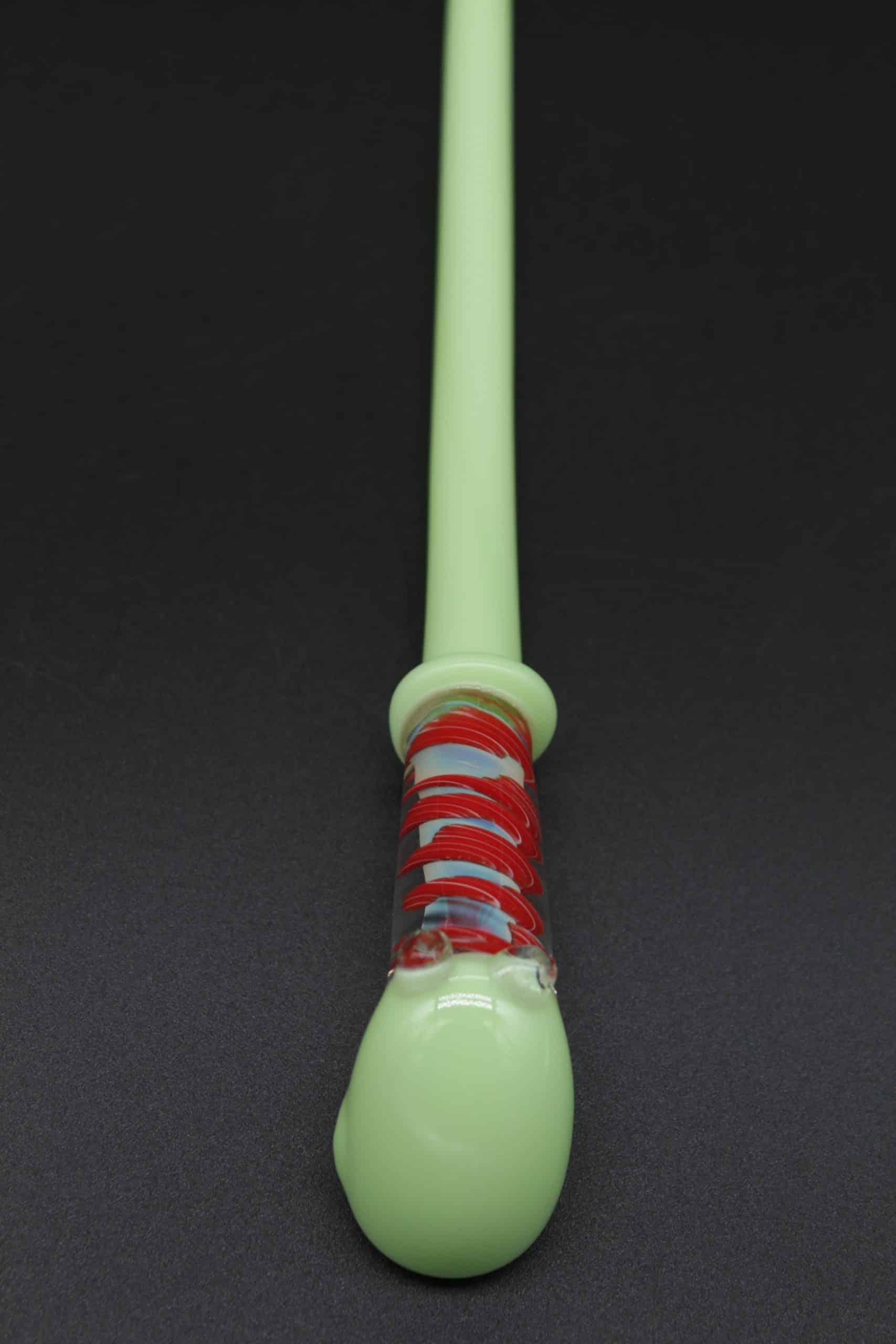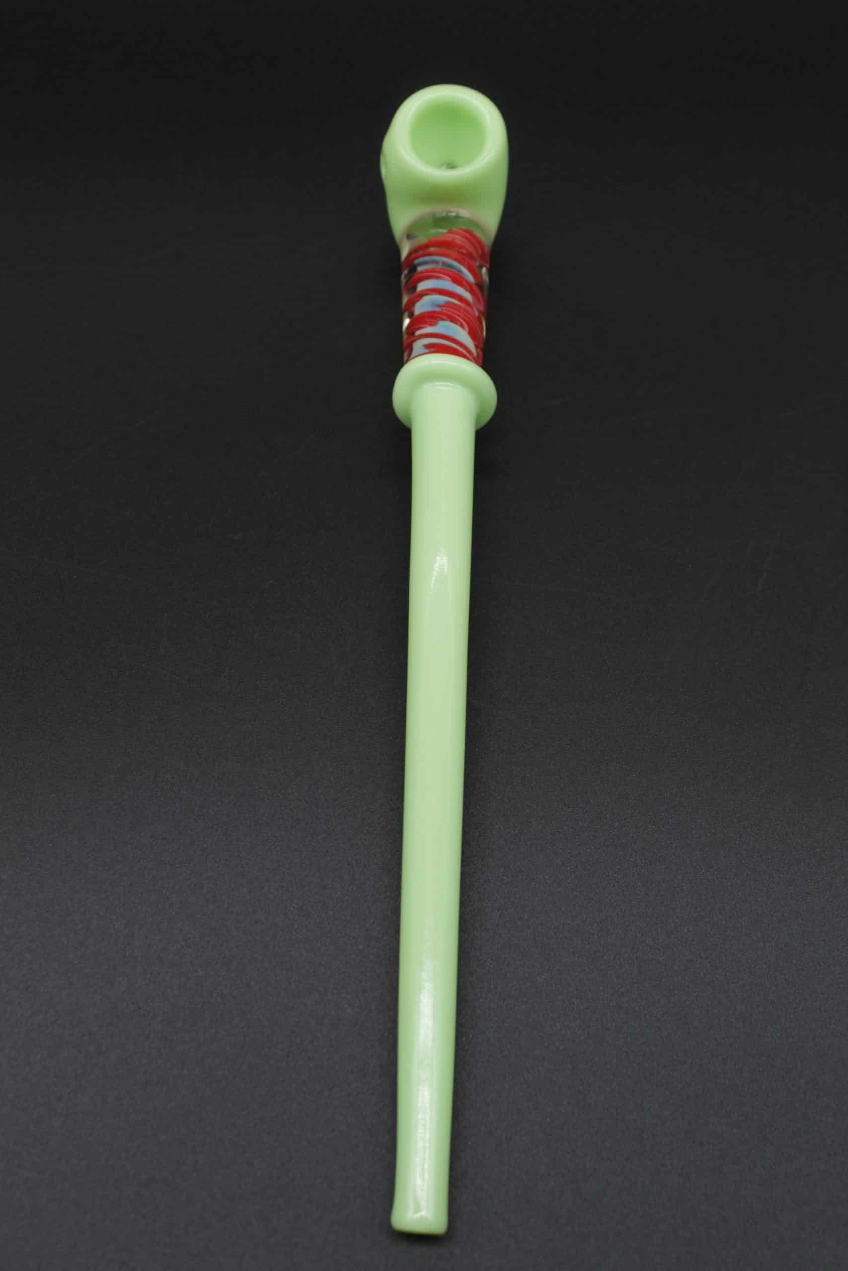 Crafted from durable borosilicate glass, this long spoon pipe is built for regular use while maintaining heat resistance and strength. The extended stem helps create a cooler, smoother draw by allowing smoke more travel distance before inhalation. At approximately 10 inches long, this piece offers a unique smoking experience compared to standard short hand pipes.