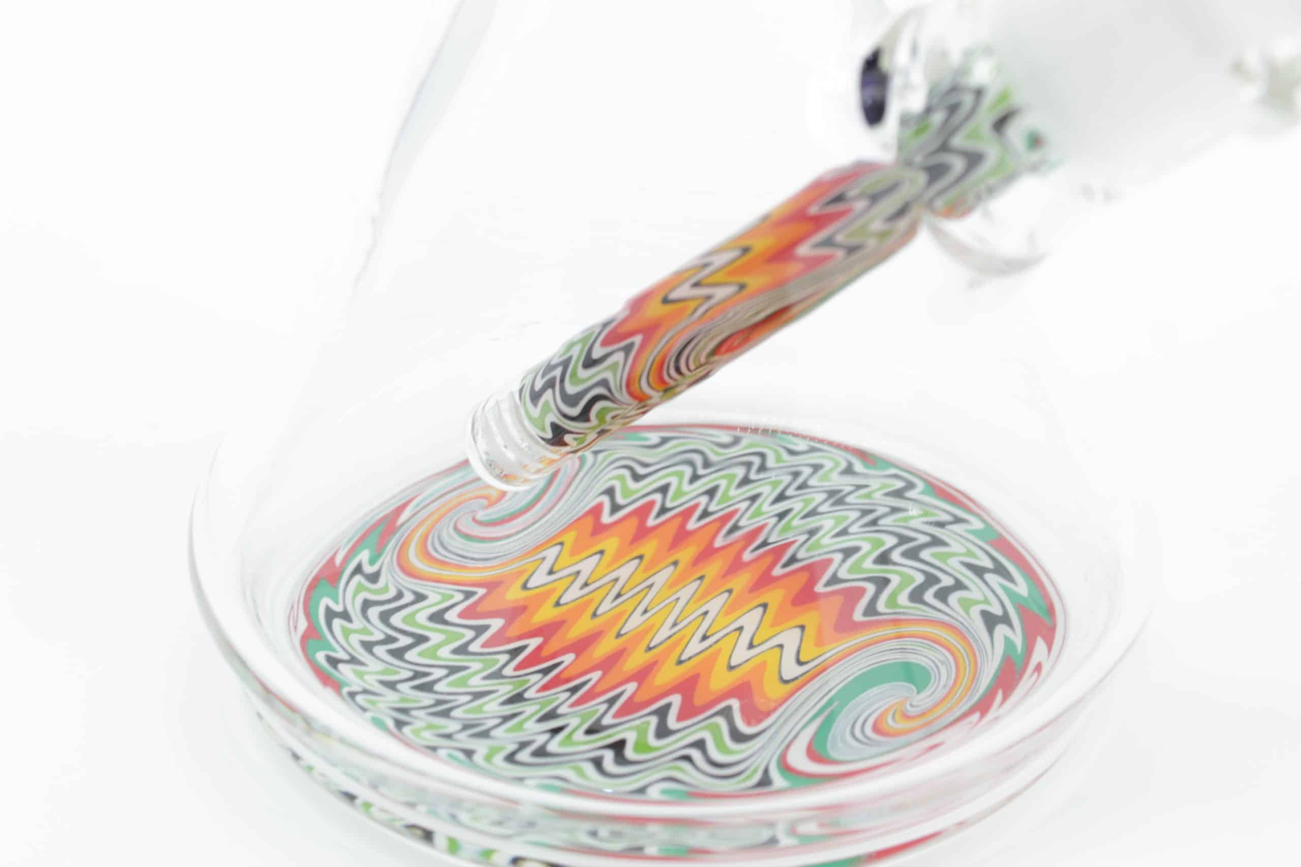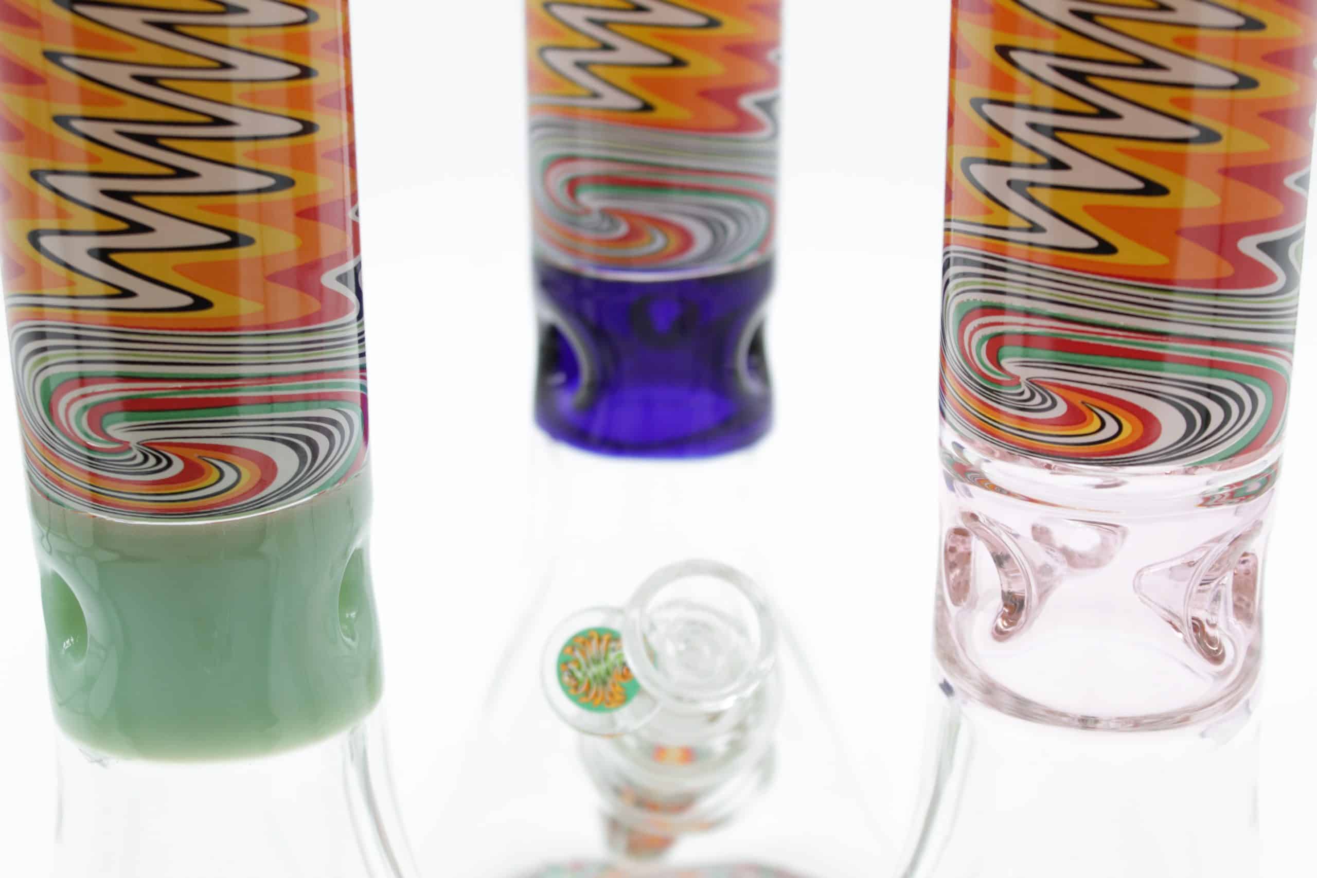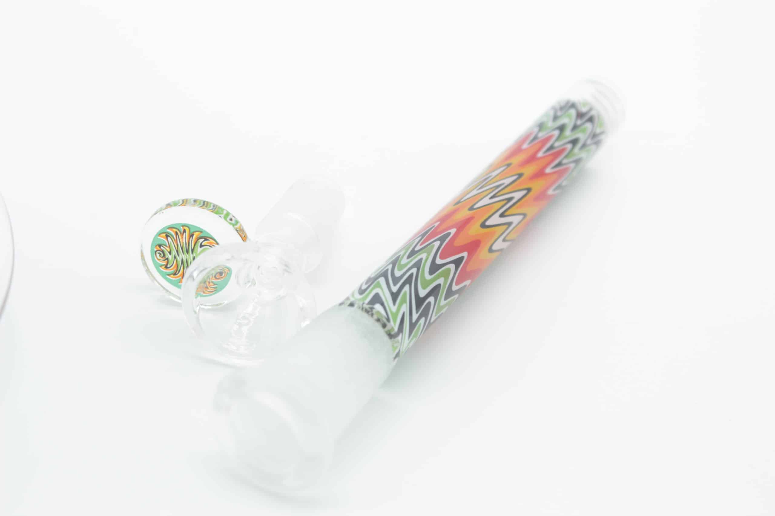 The vibrant, multi-color pattern flows through the neck, base, and matching downstem, creating a fully coordinated look that stands out in any collection. Combined with a wide beaker base and ice catcher, this bong is designed for cooler, smoother hits with every use.