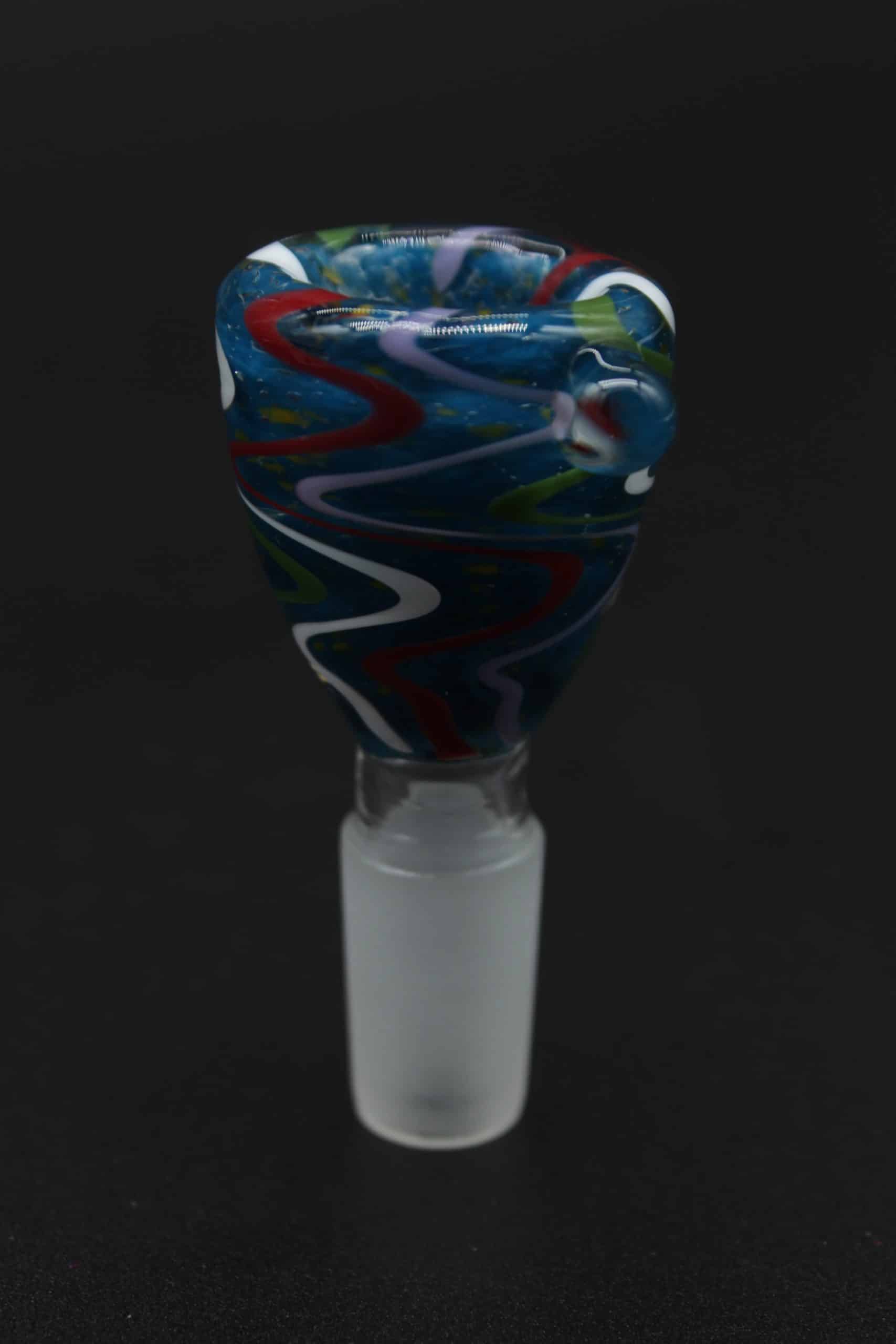 This 14mm swirl glass bowl combines practical function with standout color. The dual grip bumps make handling easier, the borosilicate construction offers dependable durability, and the vibrant swirl finish upgrades the appearance of nearly any water pipe.