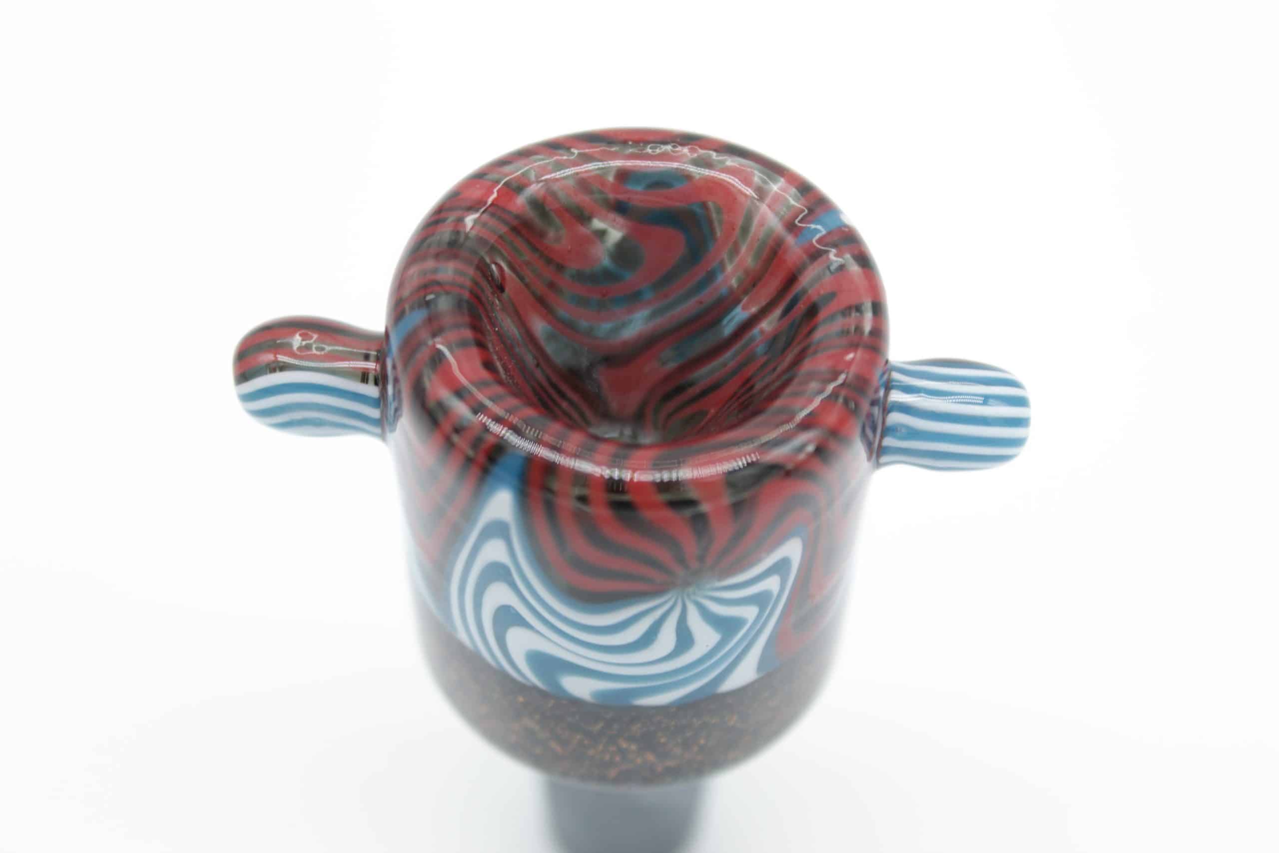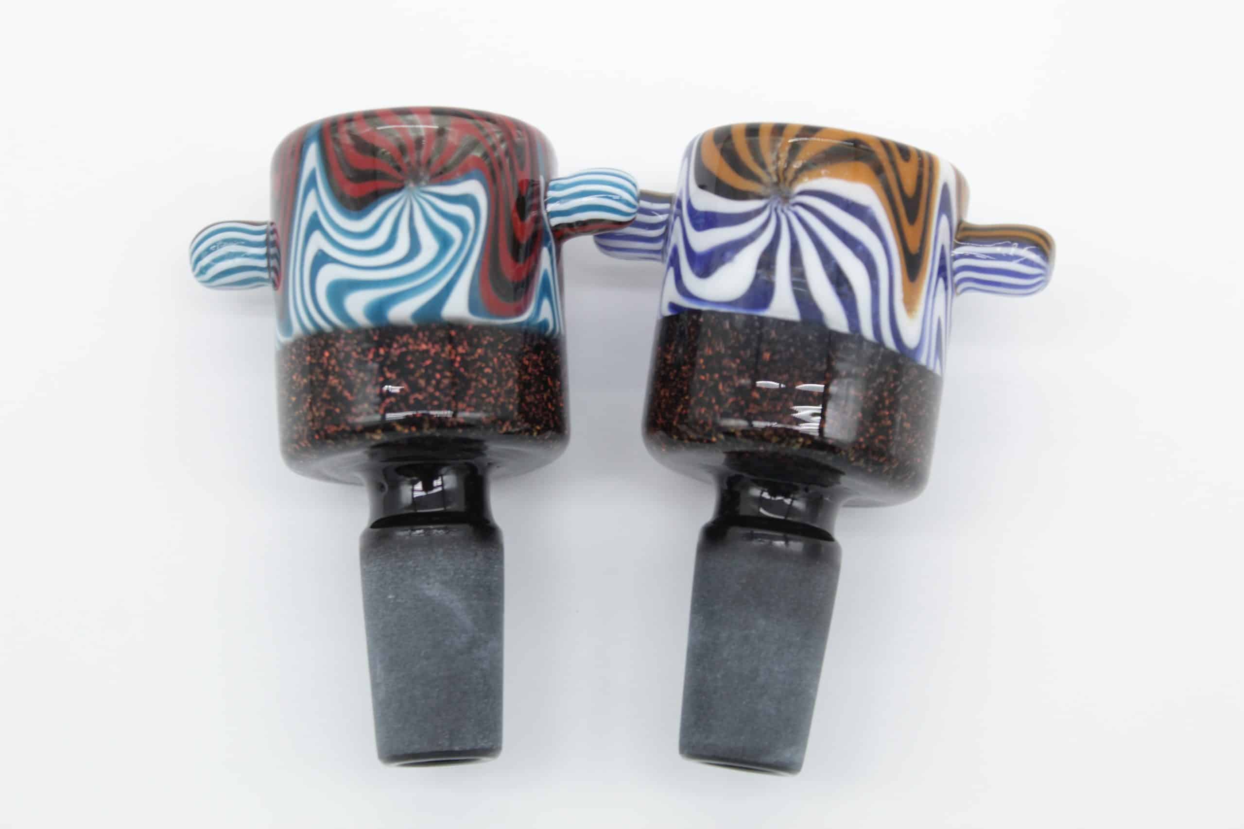 Bring bold color and premium style to your setup with this 14mm Triple Tone Swirl Glass Bowl with Dual Handles. Crafted from durable borosilicate glass, this eye-catching replacement slide features a hypnotic three-tone swirl pattern paired with a shimmering glitter accent band for a unique custom look.