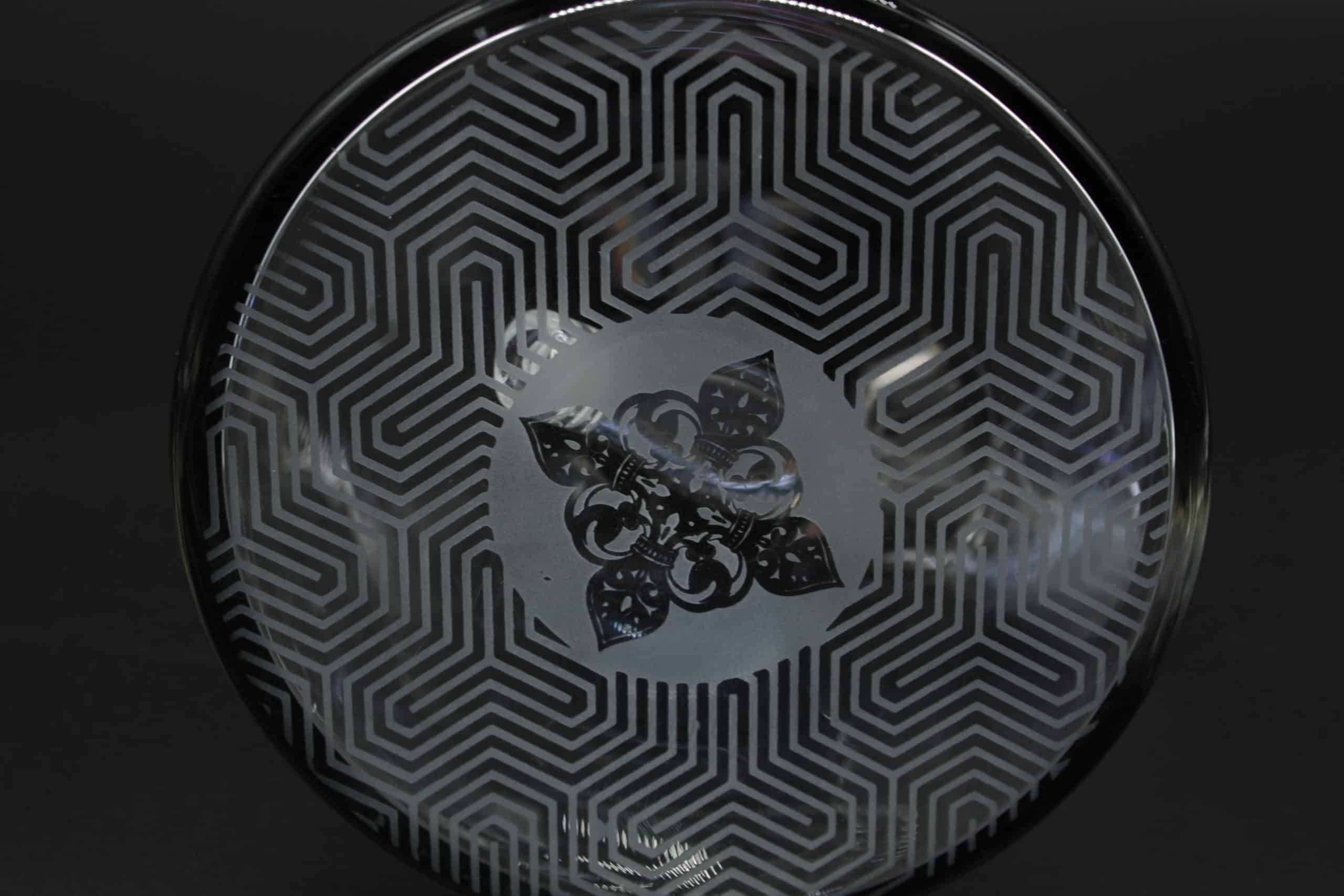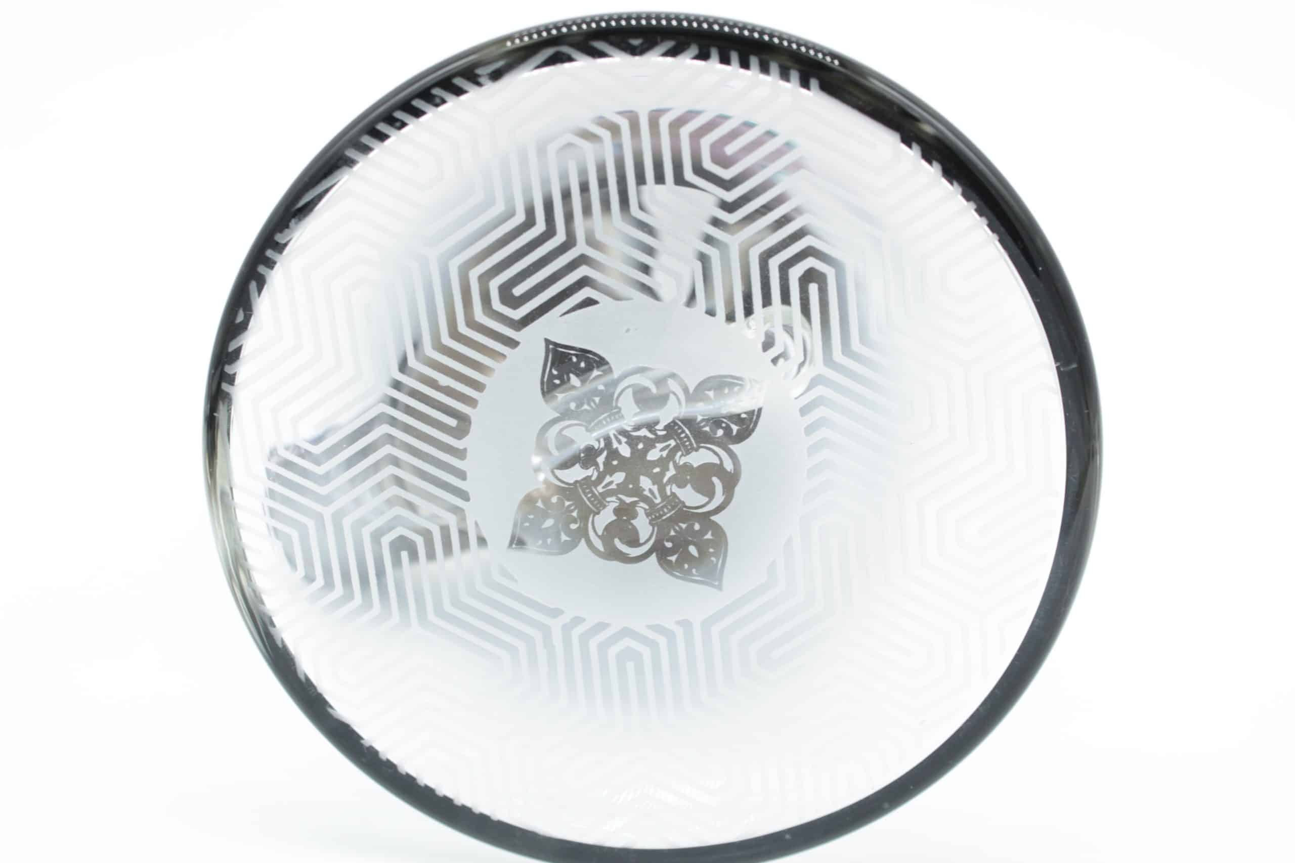 The matching cone bowl includes a colorful glass pull handle for easy removal and a polished finished look. Flip the piece over and youโ€™ll also find a subtle fleur de lis style motif on the base, adding another layer of craftsmanship and design detail.