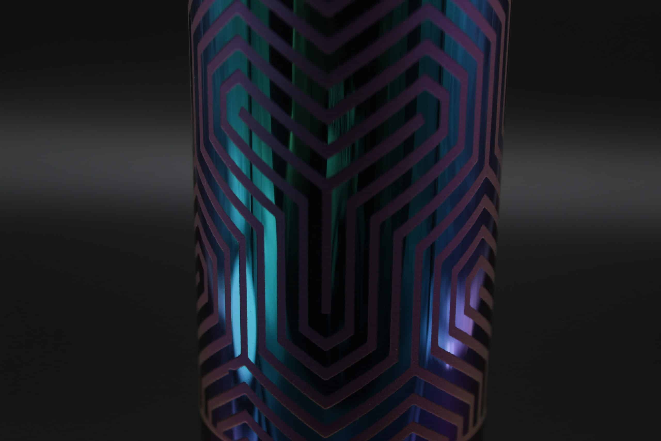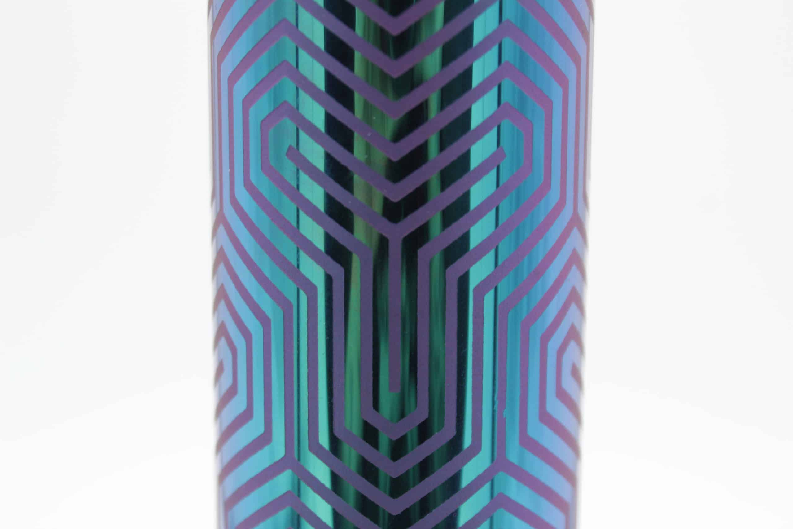 Features an eye-catching colorful geometric wrap with a reflective glossy shine.