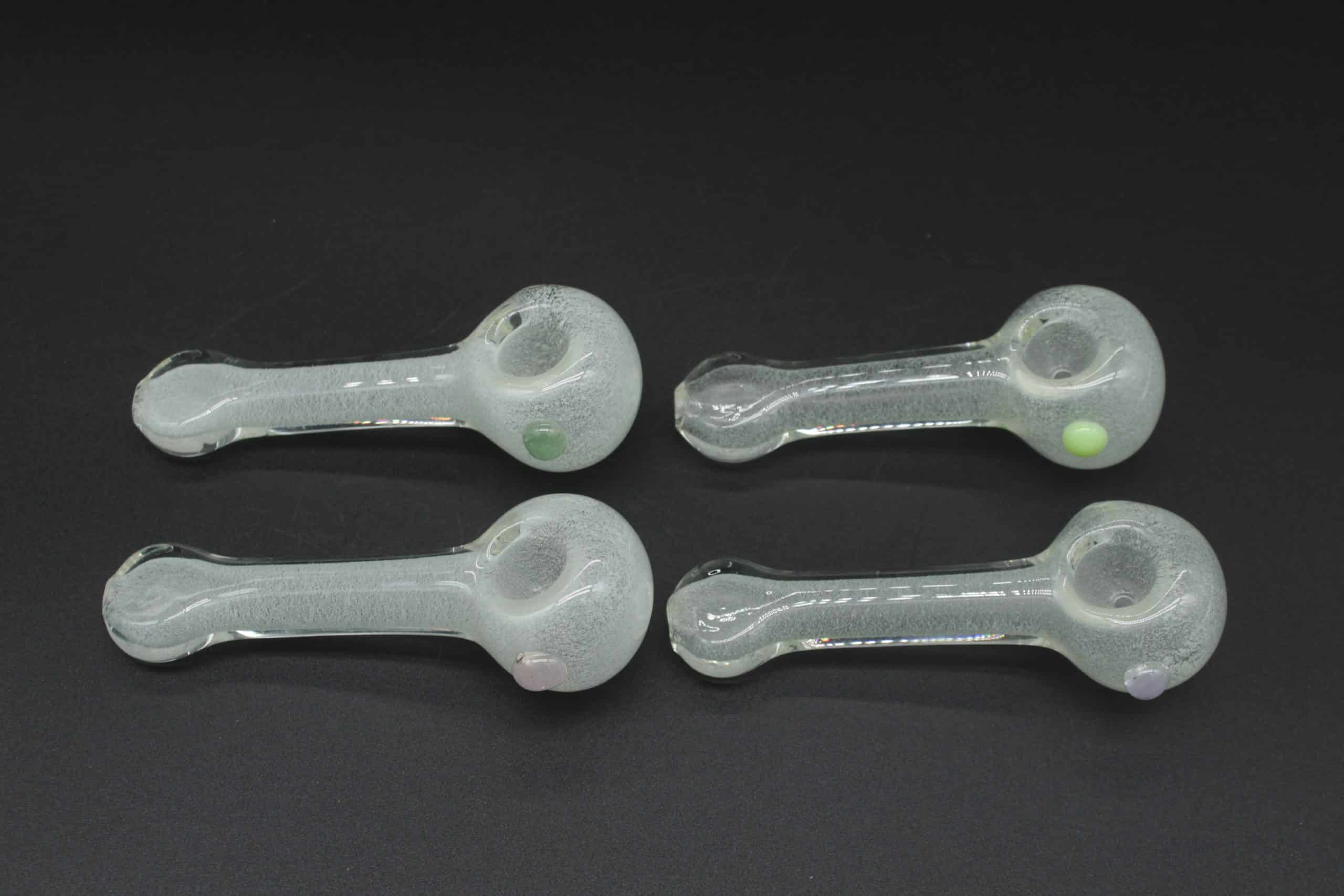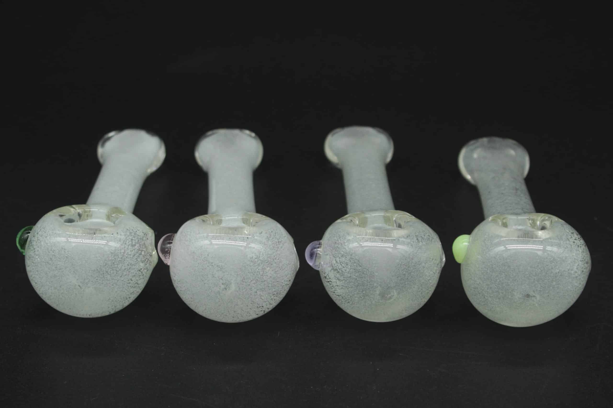 Light up your next session with this eye-catching Glow in the Dark Glass Hand Pipe. Designed with a clean frosted daytime appearance and vibrant nighttime glow, this compact spoon pipe brings style, function, and novelty together in one dependable piece.