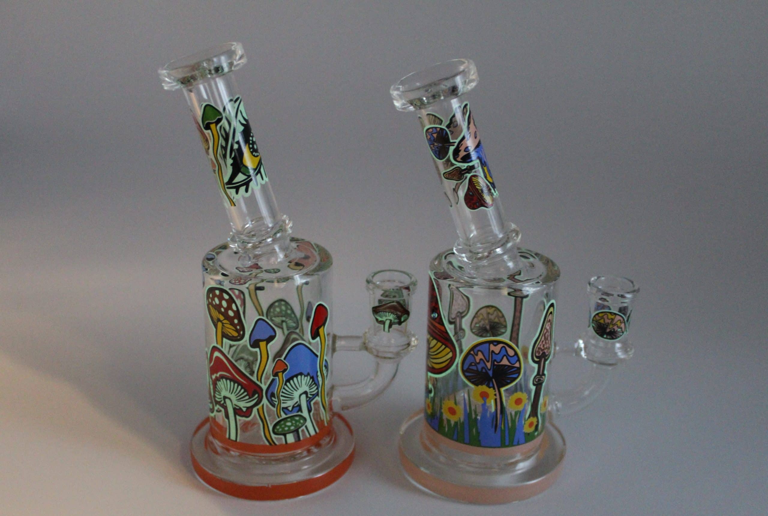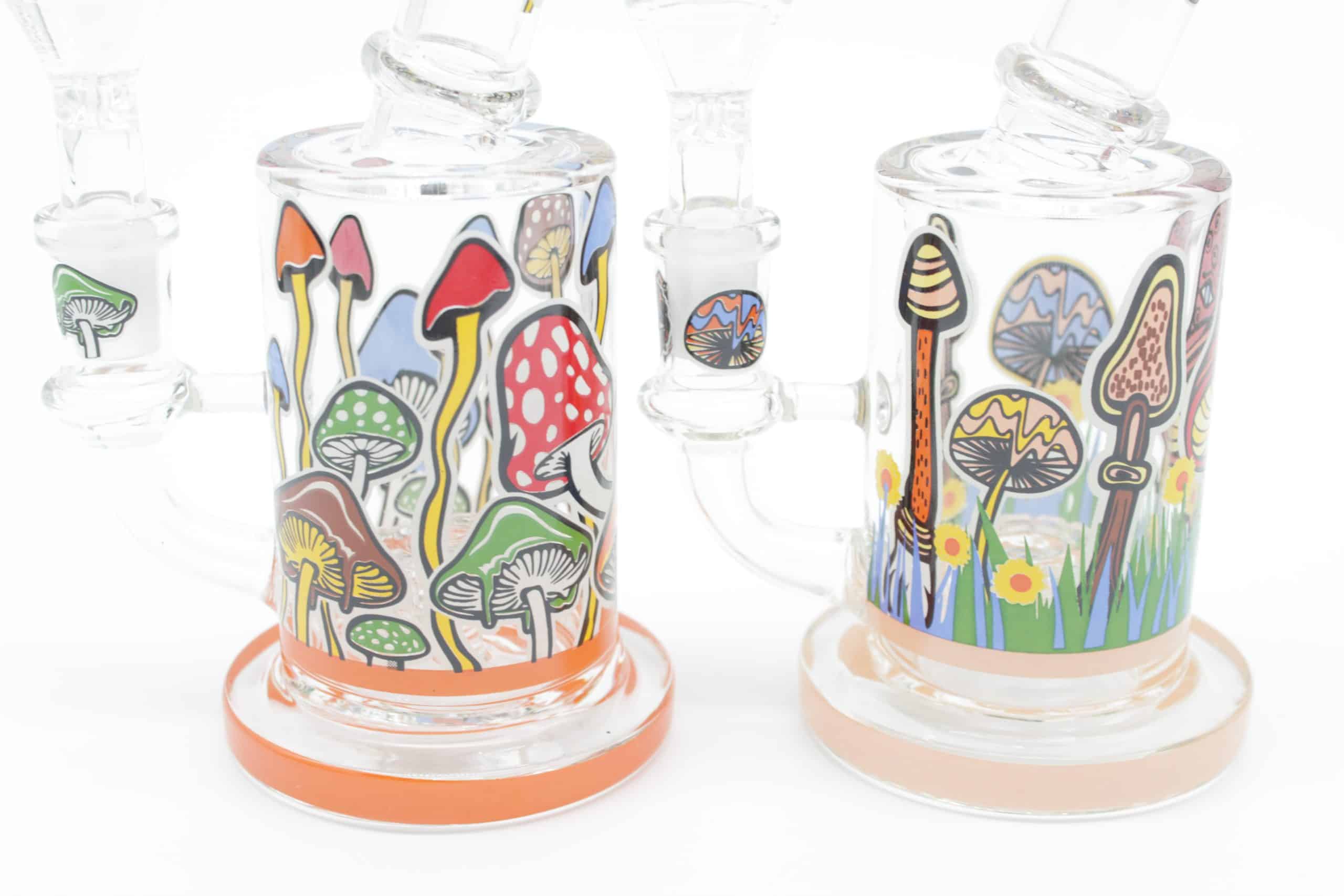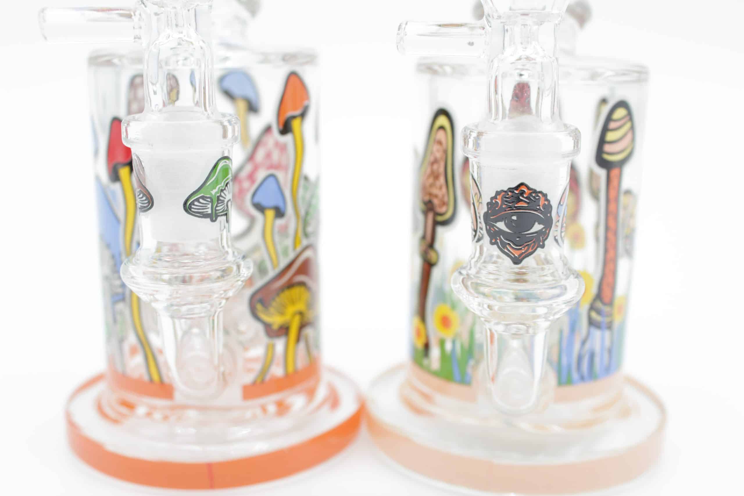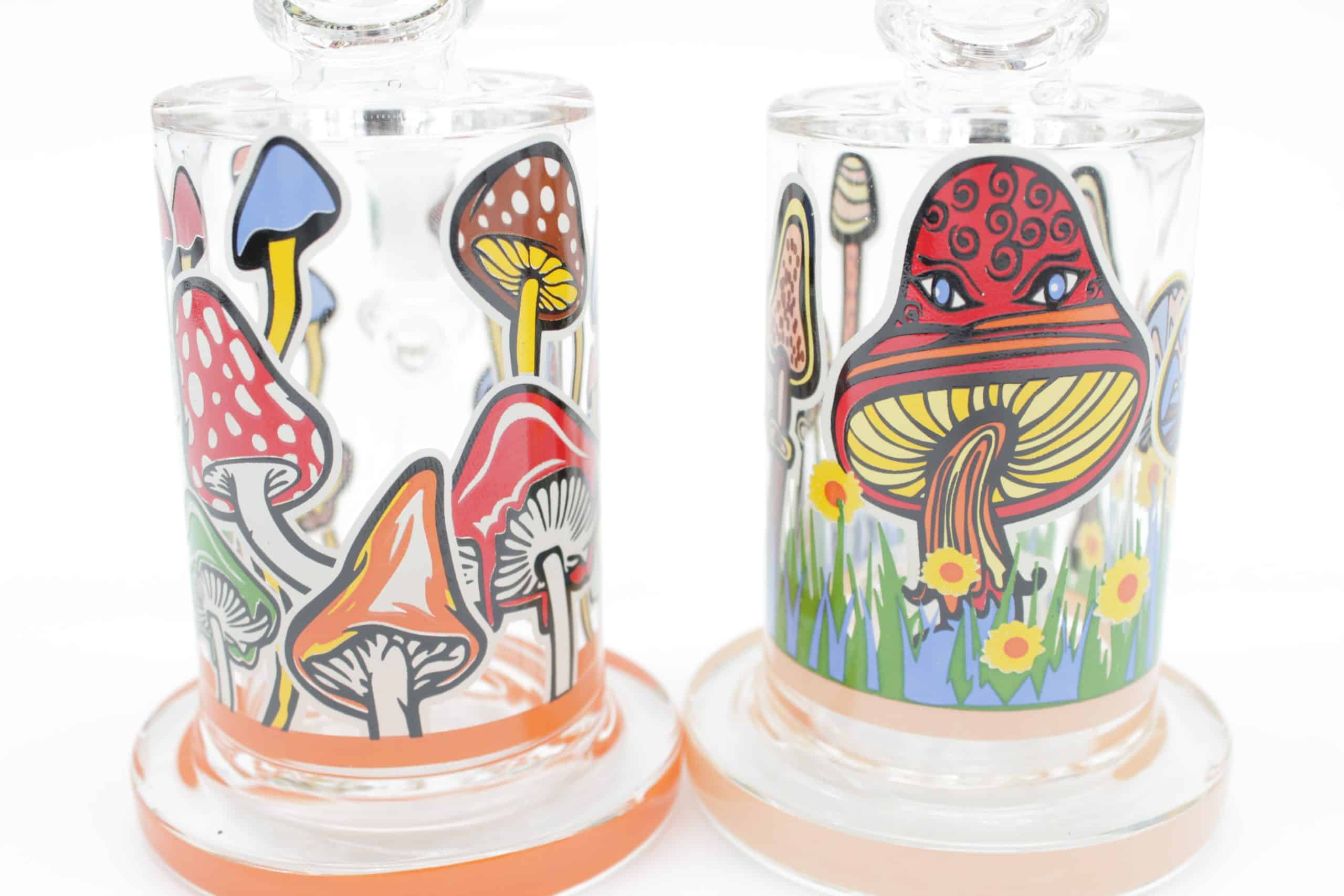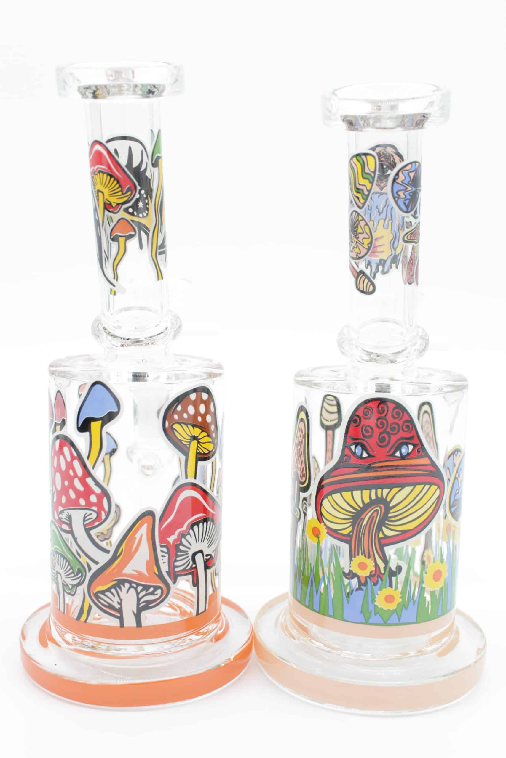 Bring colorful psychedelic style to your setup with the Mushroom Trip Small Water Pipe, a compact glass bong designed to stand out with bright mushroom artwork, trippy graphics, and glow in the dark outlined details that light up when the room gets dark.
