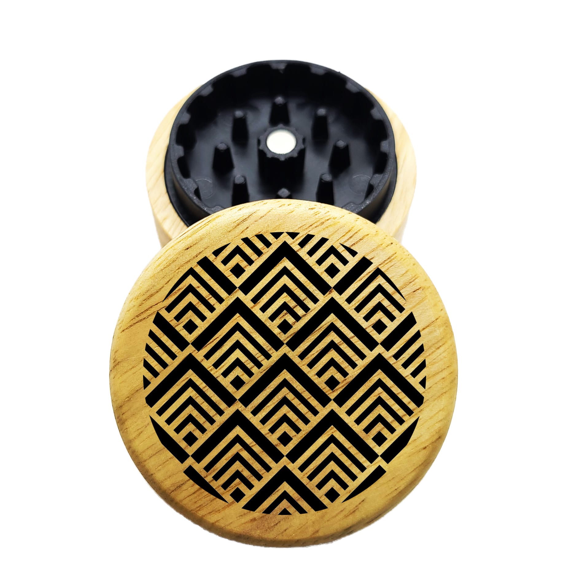 • 1.95 Inch High Quality Injection Molded Polymer Grinder inserted into a Smooth Wooden Shell