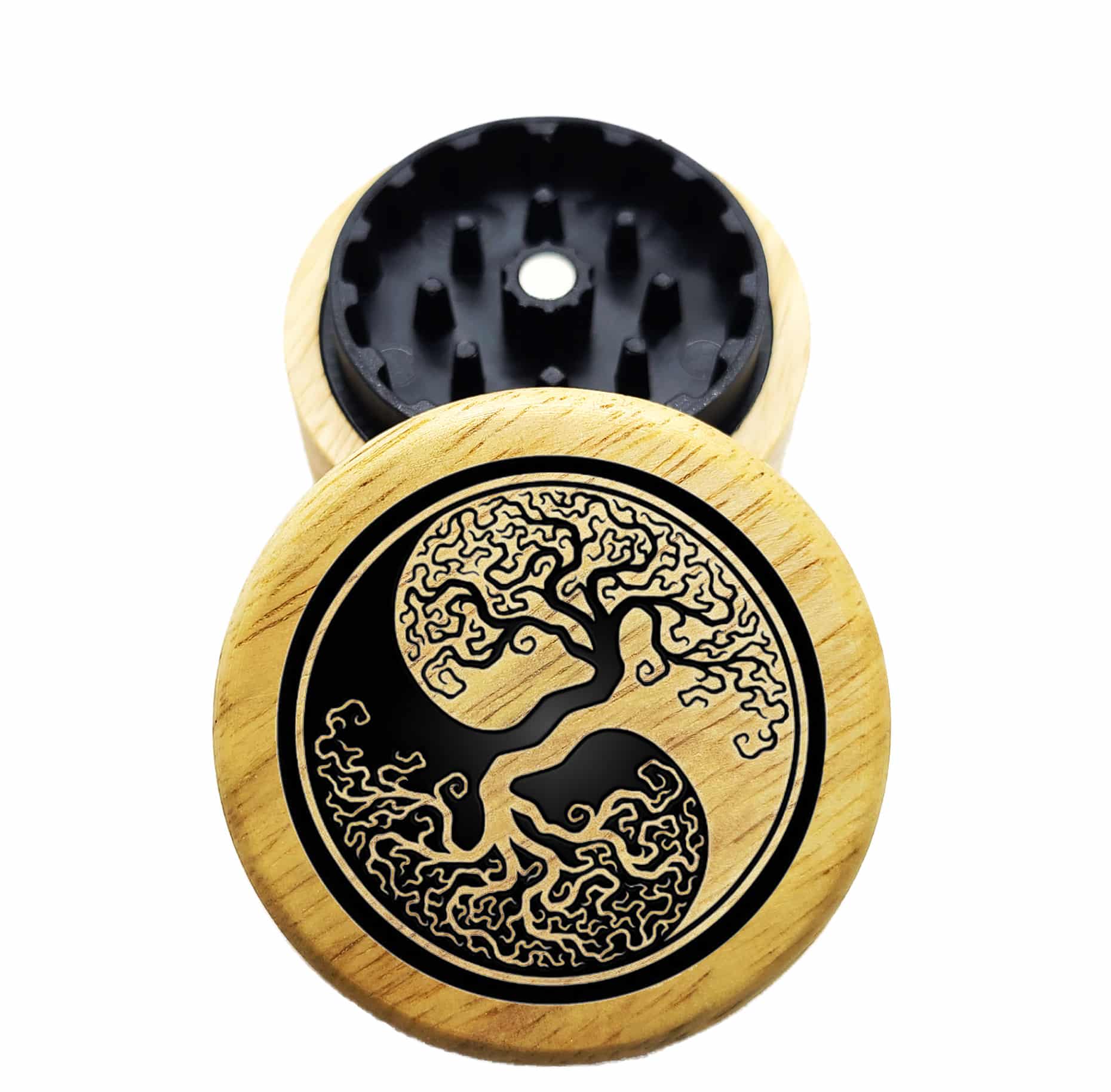 The Hybrid™ Mini Grinder: Yin Yang Tree – Mini Wooden Weed Grinder 2.3″ Herb Grinder