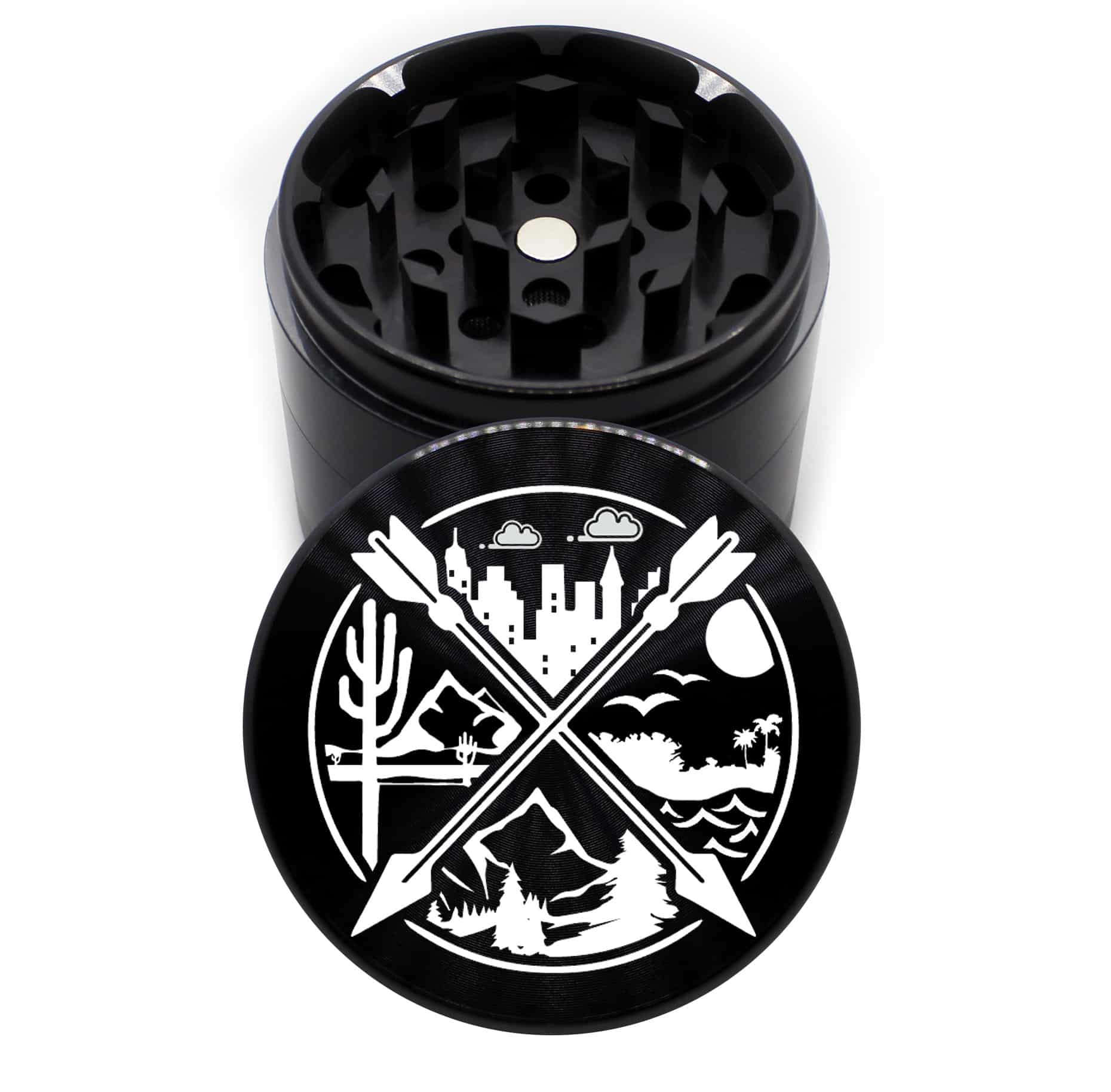- Featuring laser-engraved images done here in the USA, our grinder not only performs exceptionally but also exudes style and personality. Each design is meticulously etched, adding a touch of personalization to your smoking collection.