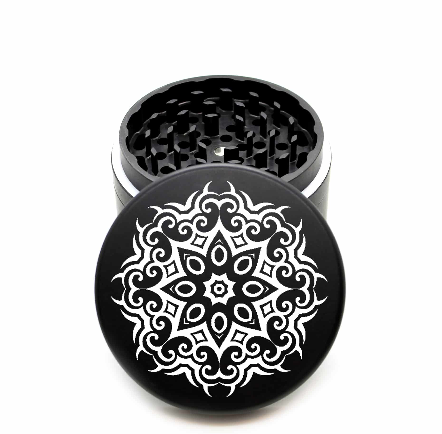 USA Made The Puck® Grinder: 8 Point Mandala – 90mm Black Aluminum Weed Grinder