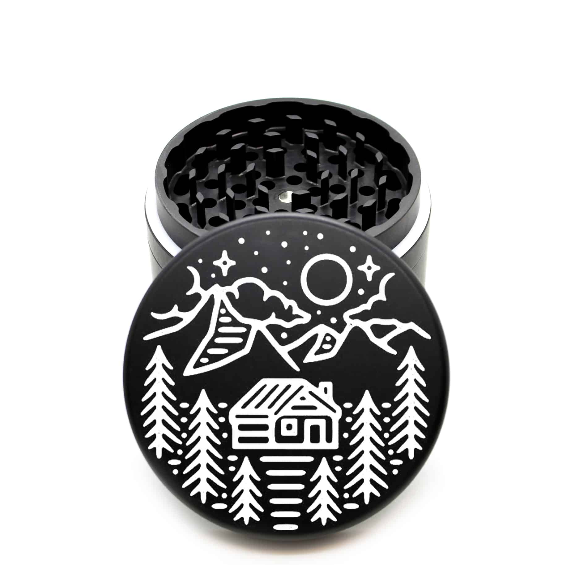 USA Made The Puck® Grinder: Cabin Trees – Large 90mm Black Weed Grinder
