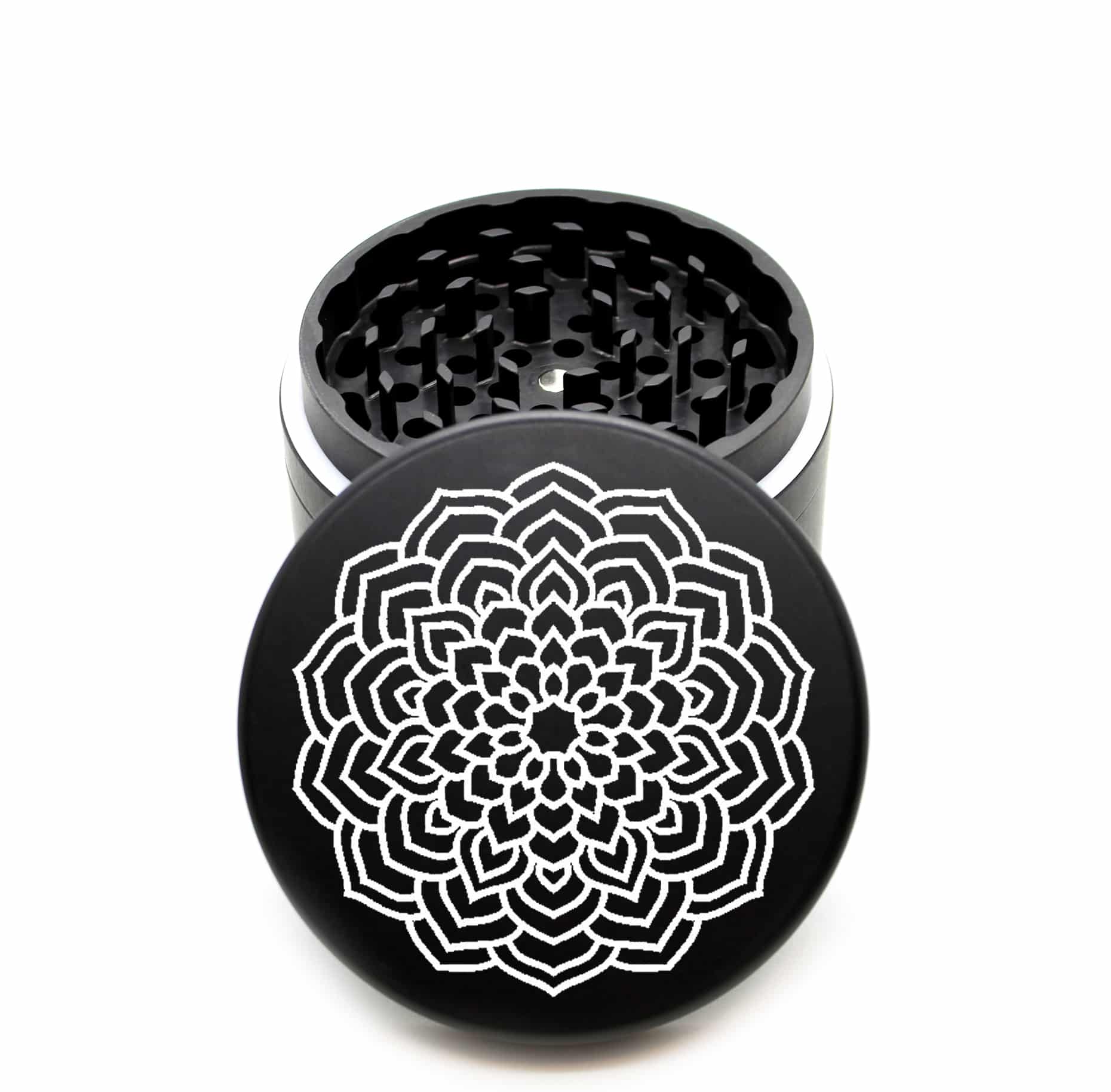 USA Made The Puck® Grinder: Larkspur Mandala – 90mm Black Weed Crusher