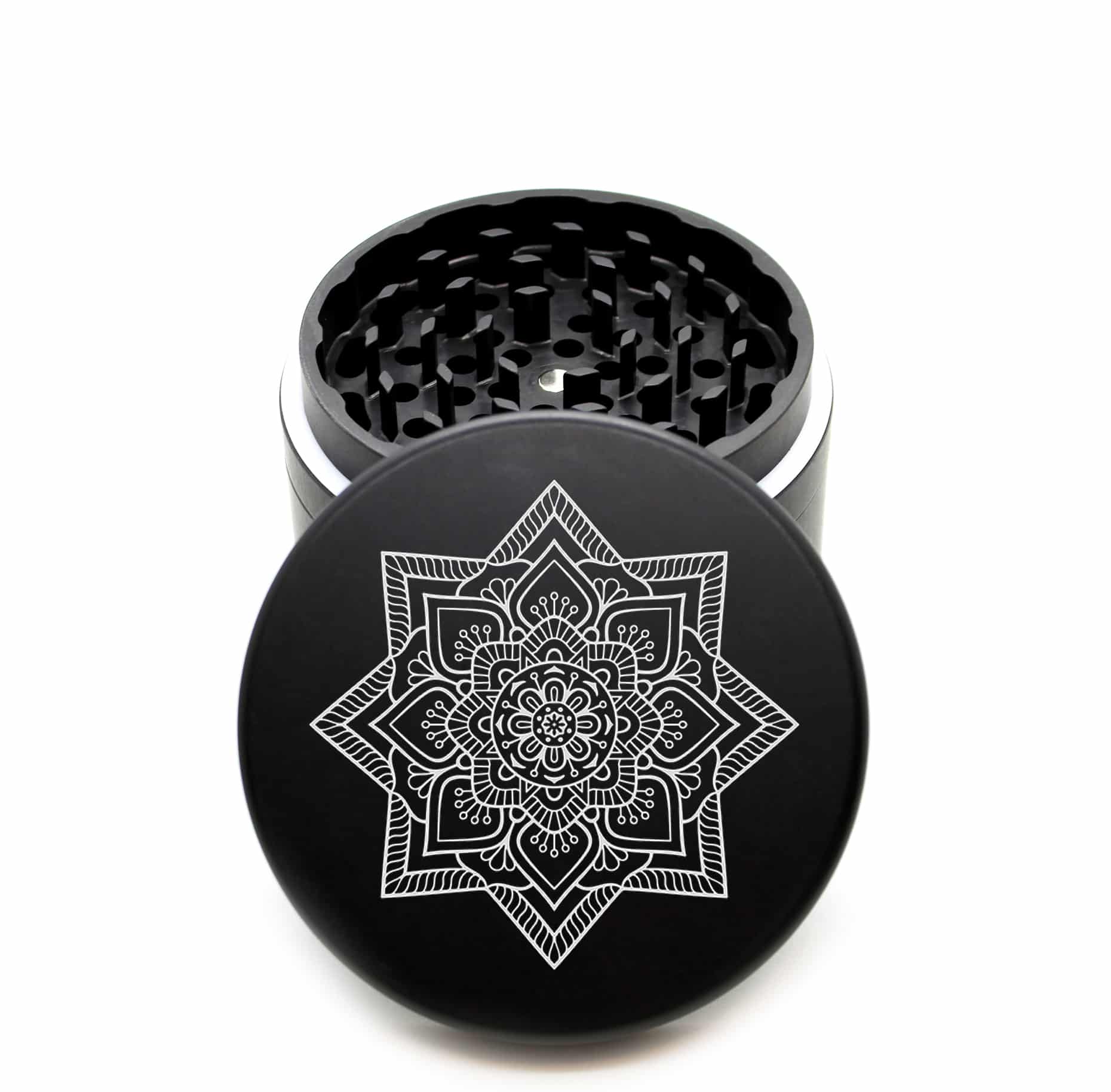 USA Made The Puck® Grinder: Star Mandala – 90mm Black Aluminum Herb Grinder
