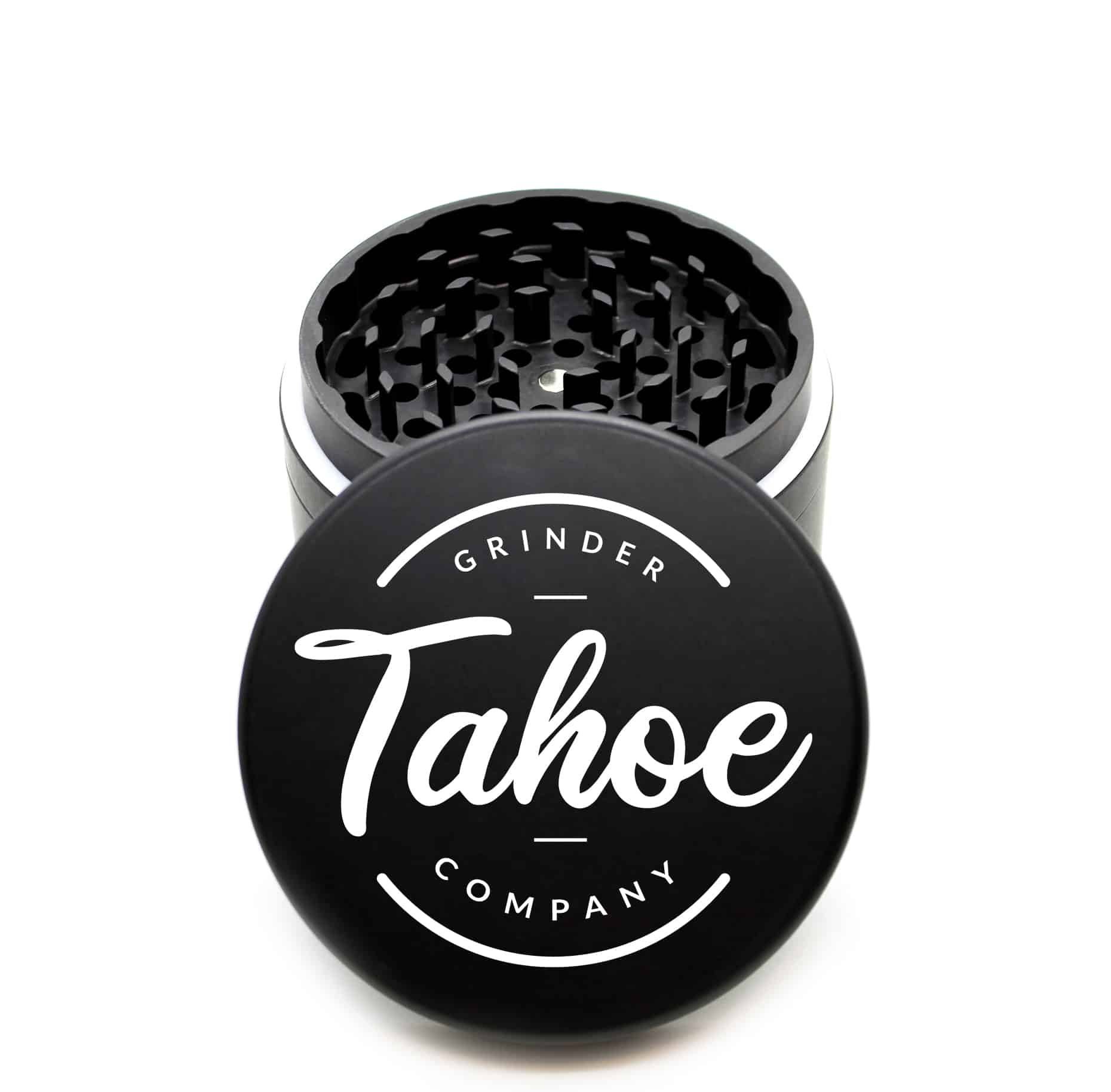 USA Made The Puck® Grinder: Tahoe Grinder Co Round Logo – 90mm Black Metal Cannabis Grinder