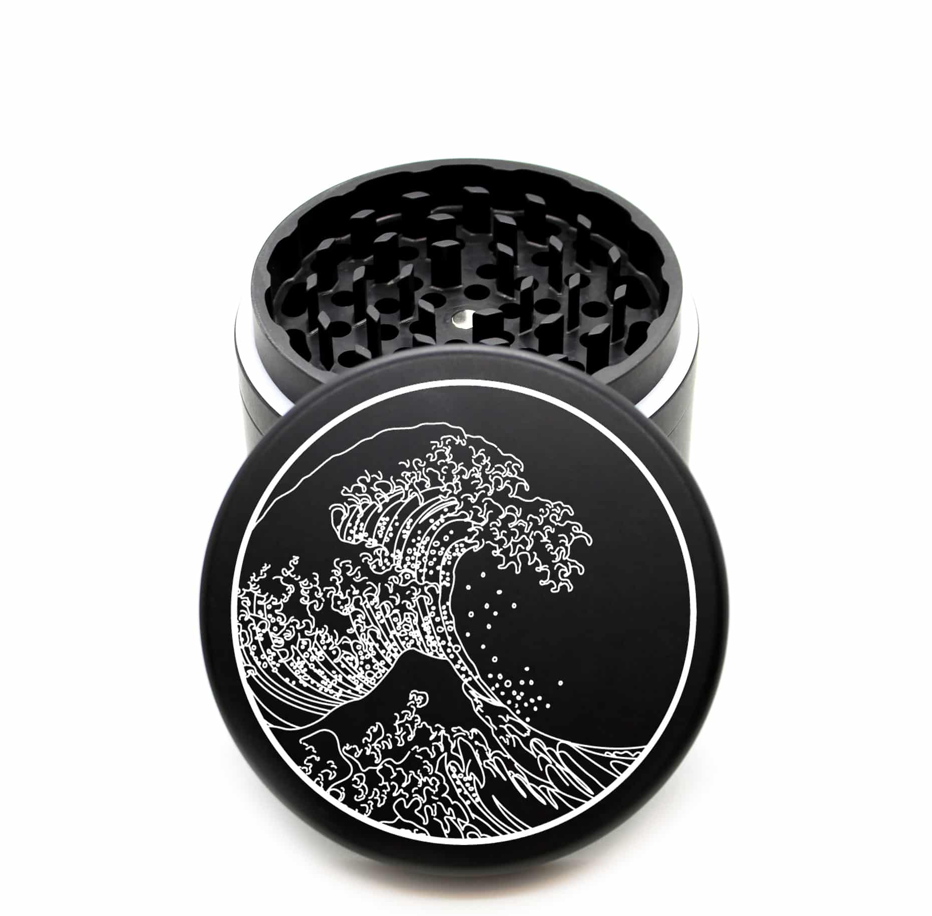 USA Made The Puck® Grinder: The Great Wave Off Kanagawa – Premium 90mm Black Herb Grinder