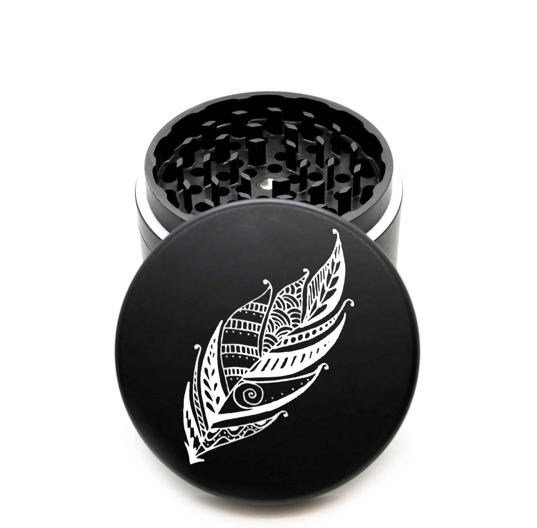 USA Made The Puck® Grinder: Umpqua Feather Mandala – Large 90mm Black Weed Grinder