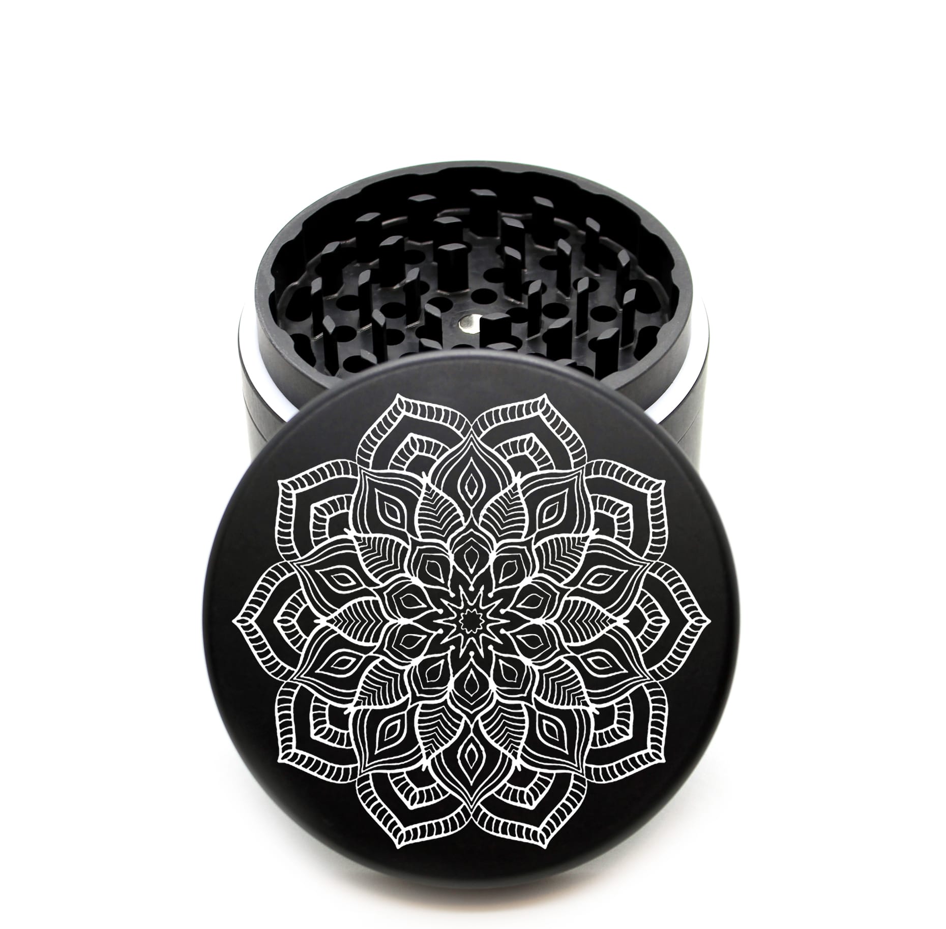 USA Made The Puck® Grinder: Zinnia Mandala – 90mm Black 3-Piece Herb Grinder