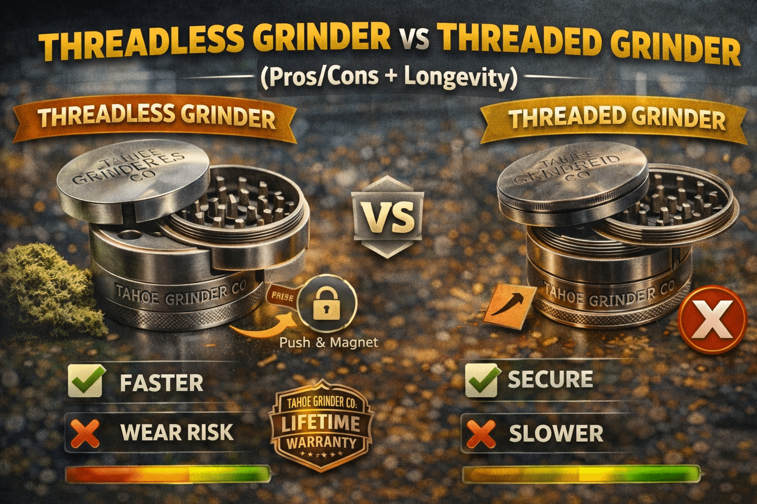 With good materials and strong magnets, threadless grinders often outlast threaded grinders under daily use.