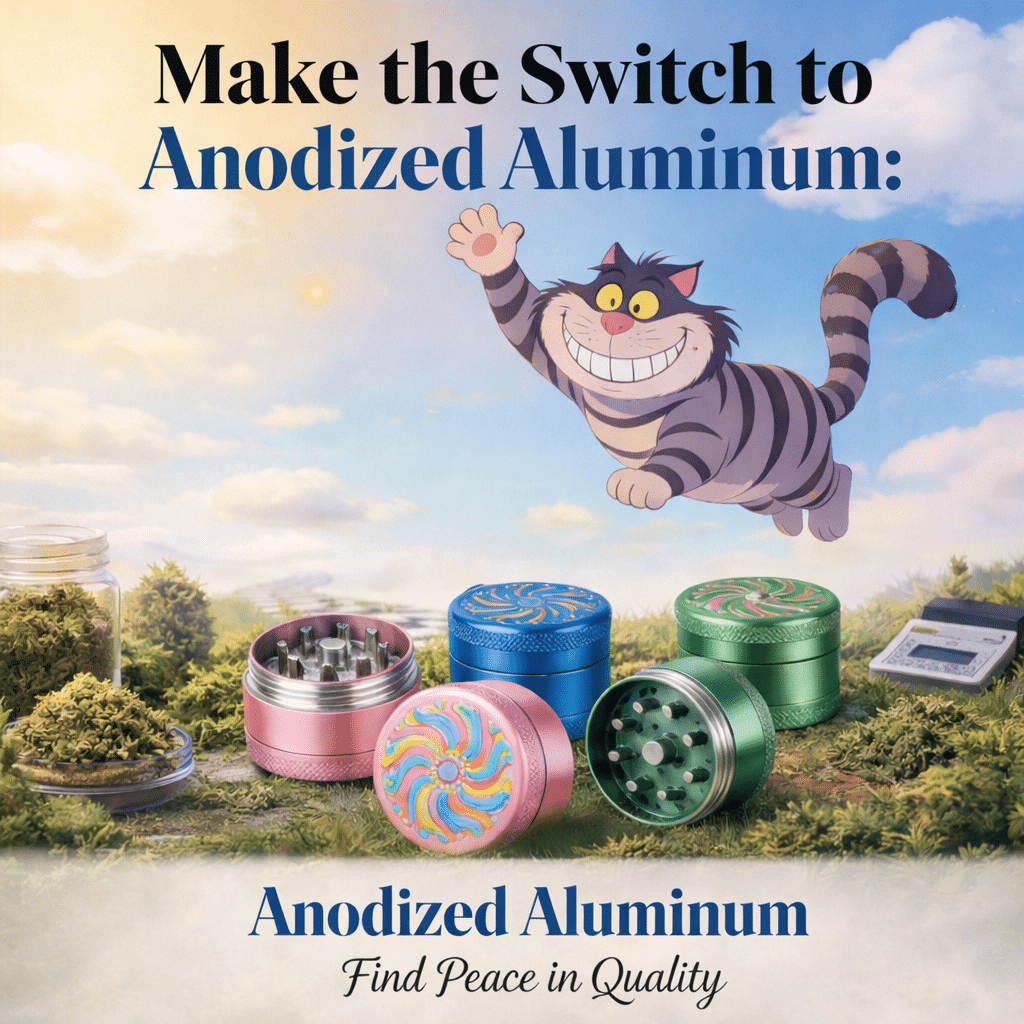 Contrary to popular belief, alot of “ceramic grinders” are actually painted and are not truly ceramic-coated. The paint used on these grinders is often the cheapest option available, and it can easily chip or fade over time. Furthermore, the paint used may contain toxic substances, which can leach into your herbs and pose a significant health risk when smoked, ingested, or inhaled. Paint has its place; for example on a house or a car, but it definitely has zero place being on a weed grinder. Protecting your well-being should be a top priority, which is why choosing an alternative like anodized aluminum is crucial.