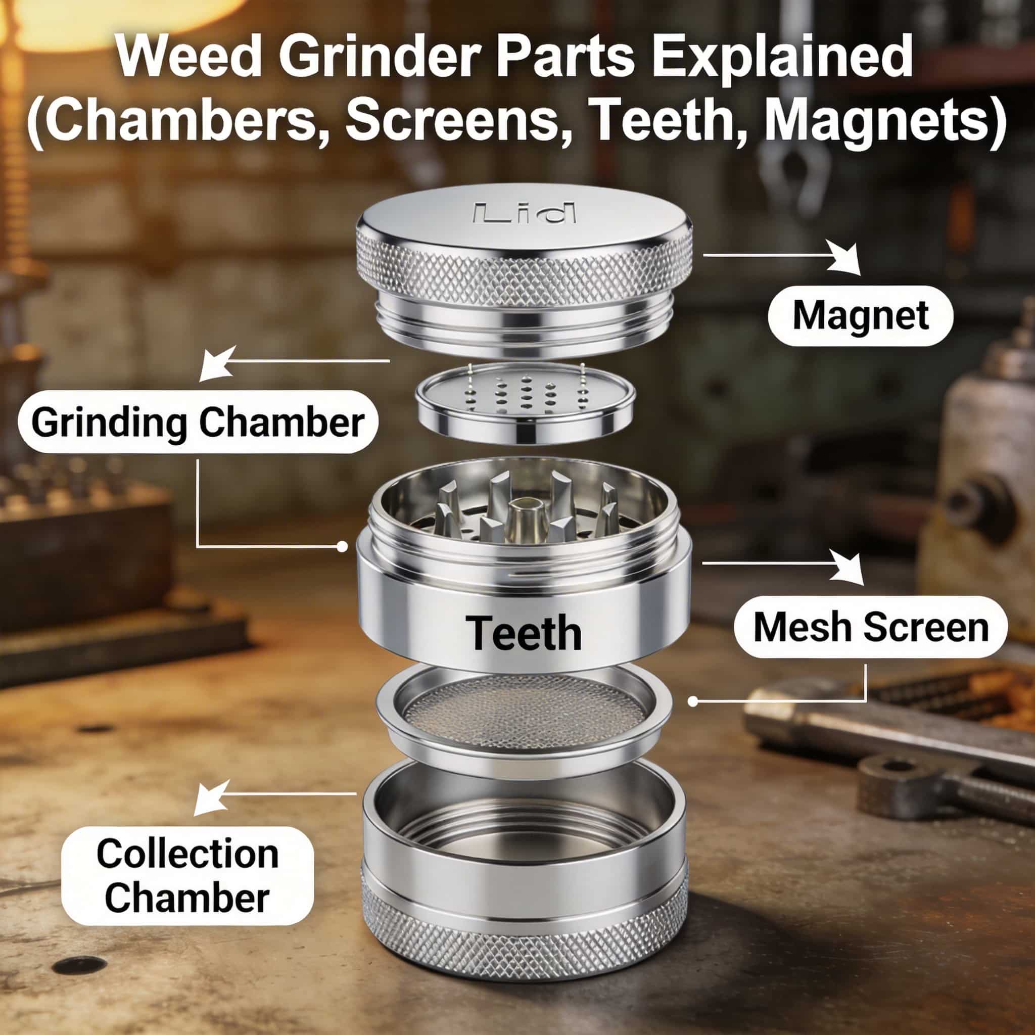 Most people buy a weed grinder based on size or color โ not realizing that the internal parts determine everything: grind quality, airflow, kief collection, smell retention, and how often the grinder jams or clogs.