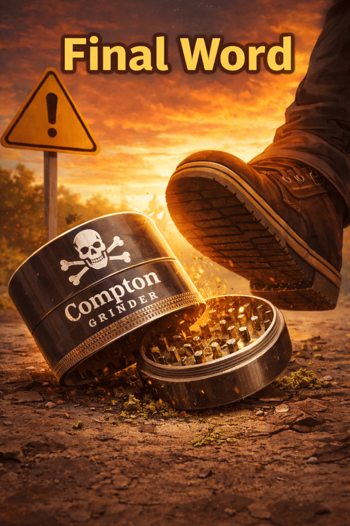 The Tahoe Grinder Company’s “Puck” grinder is federally protected, and Compton became the second brand to learn that lesson the hard way. The first was a short-lived attempt called “The Pucc Grinder.” That experiment didn’t survive either — and yes, we now own their .com.